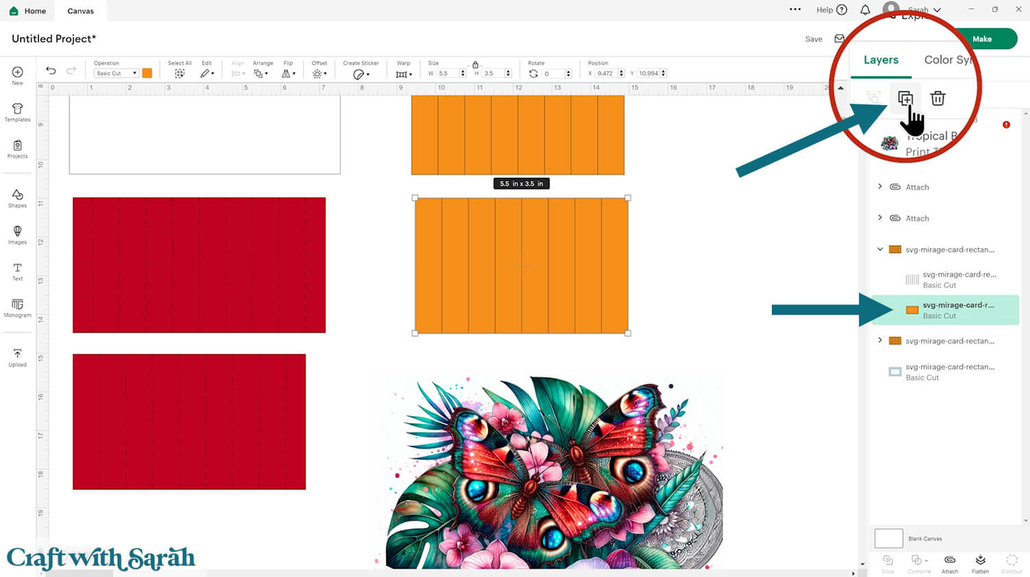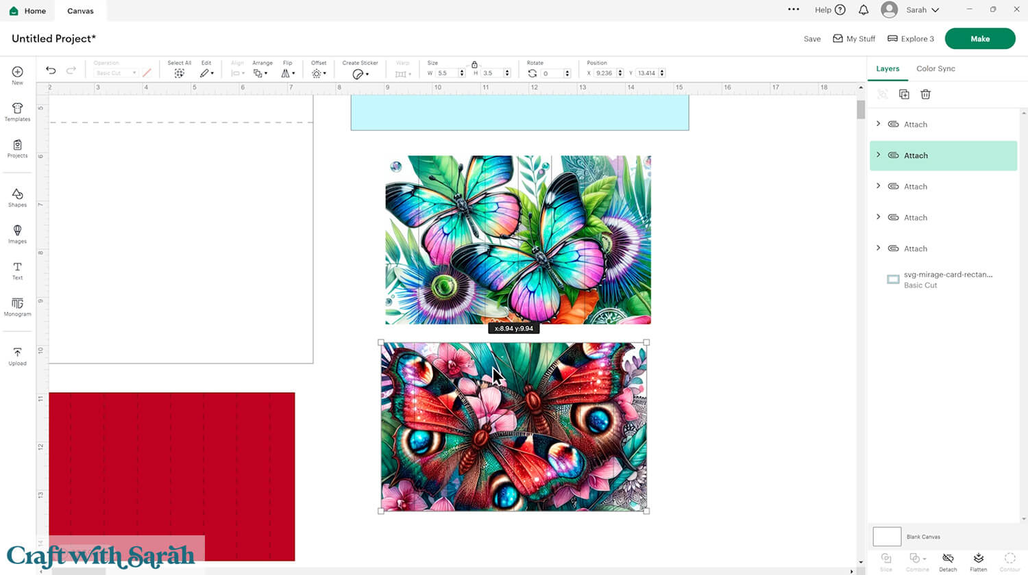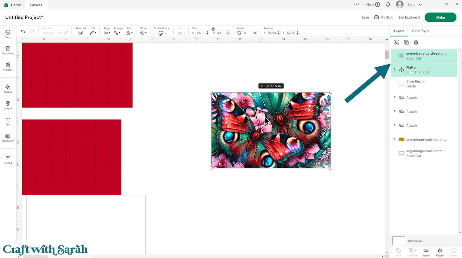 IMPORTANT – Do NOT change the size of the rectangle, otherwise it will not fit onto the card. ONLY resize the printable graphic.