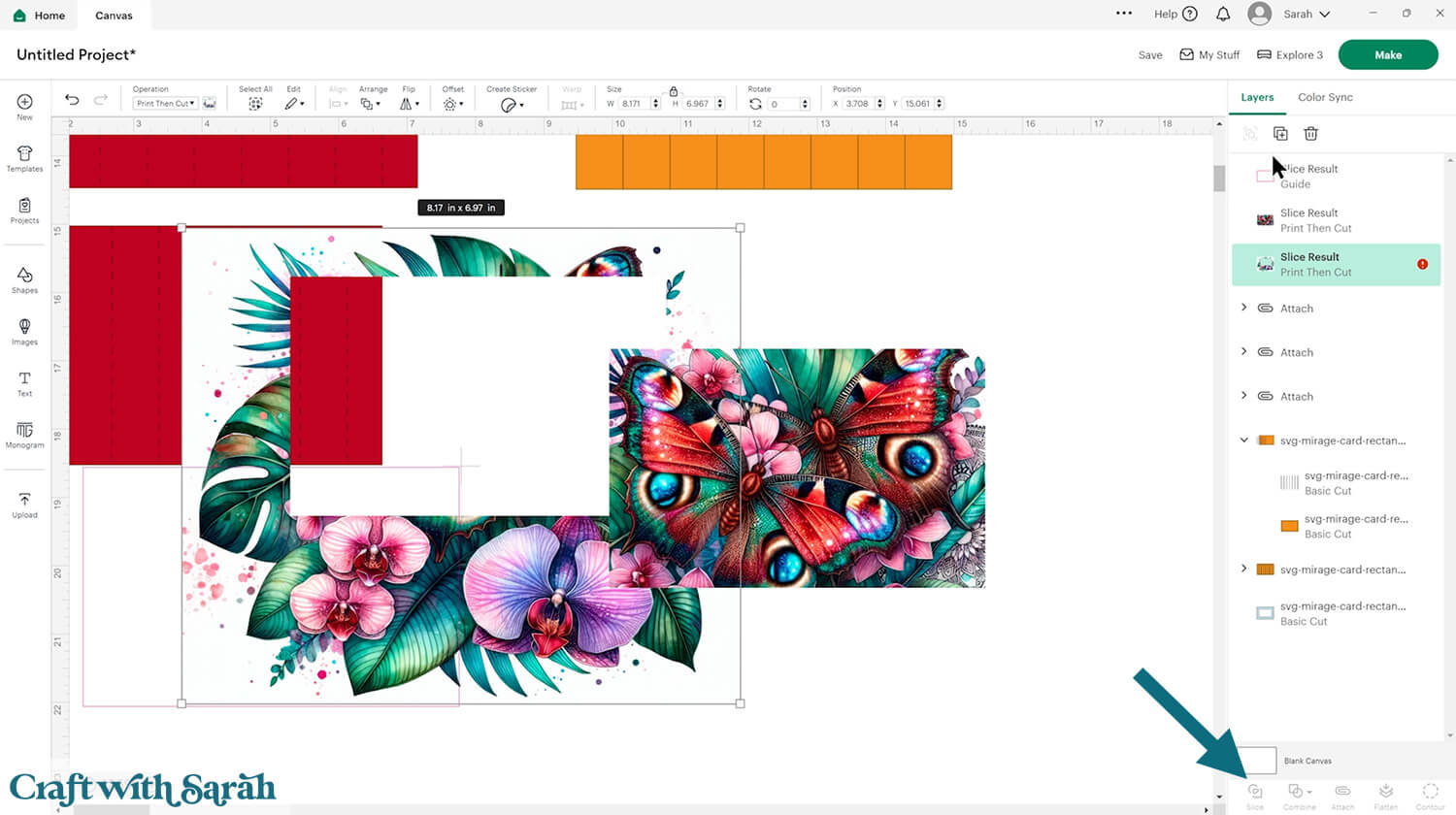 When you’re happy with the positioning, select the graphic and the guide layer and click “Slice” at the bottom of the layers panel.