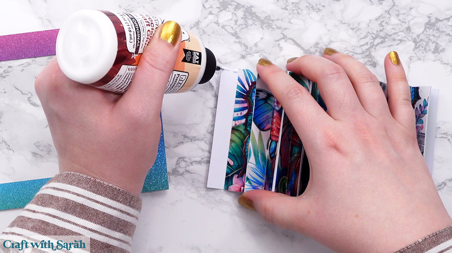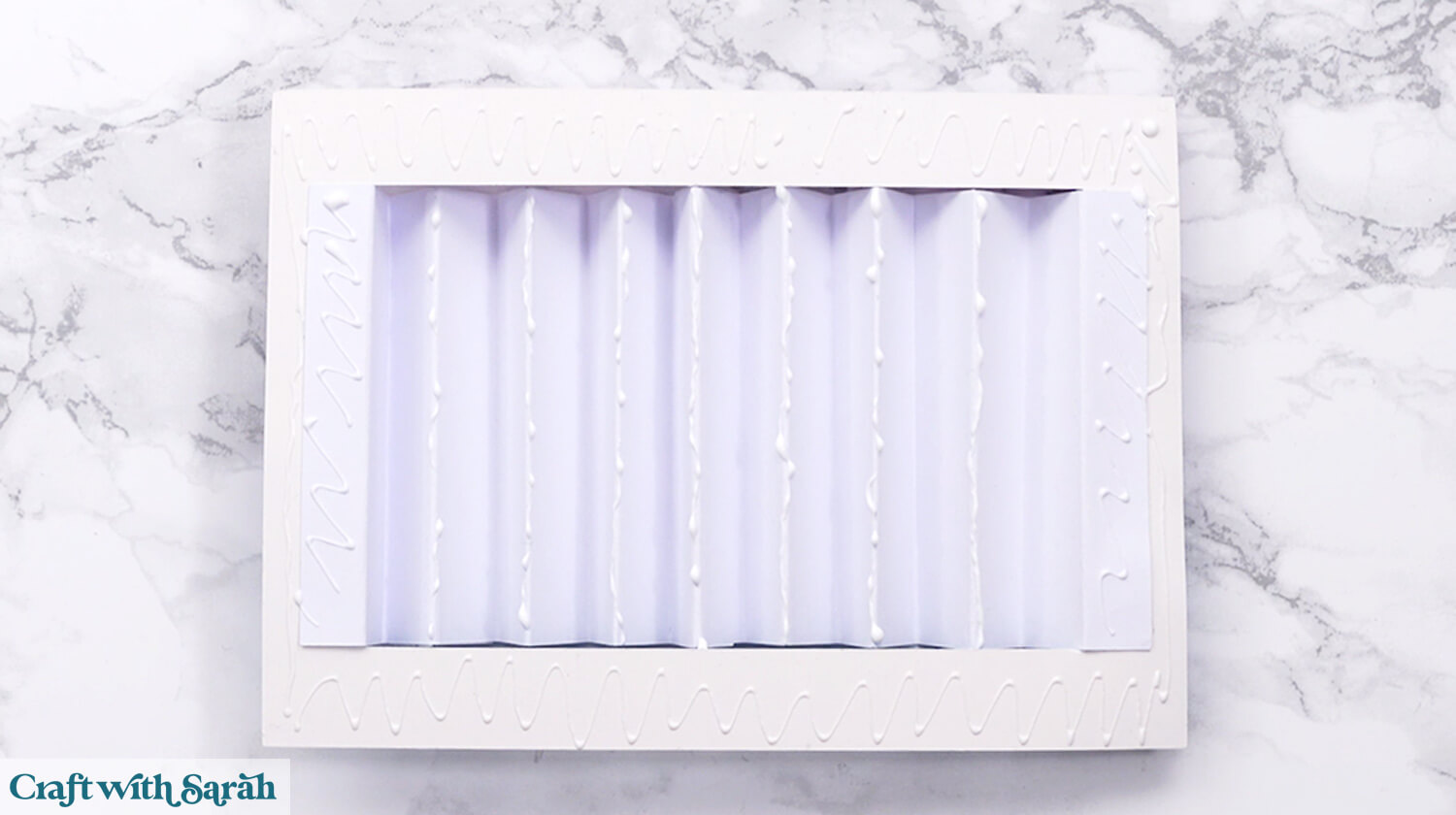 Add glue around the edge of the frame and down the bottom points of the concertina.