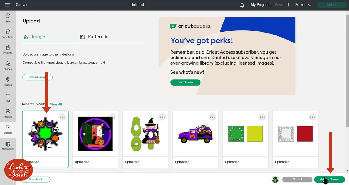 After uploading, the design will show in your “Recently Uploaded Images”.