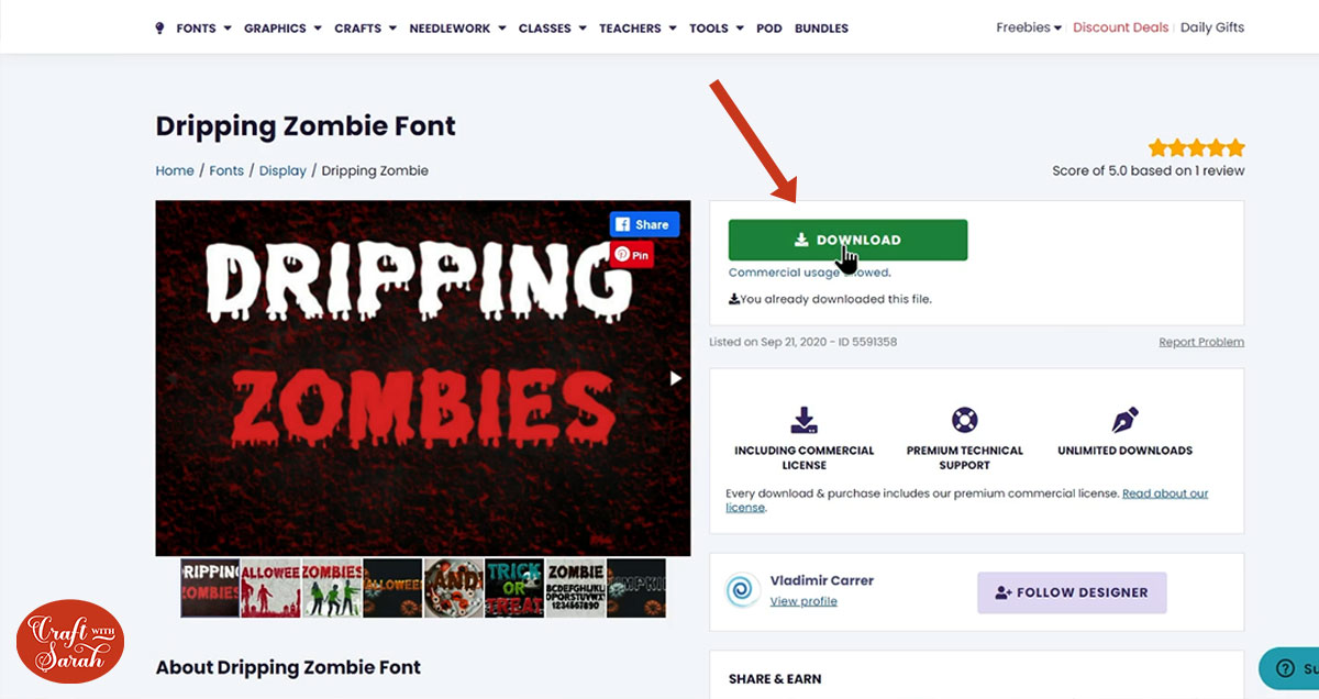 Choose a spooky font. I’m using Dripping Zombies from Creative Fabrica.