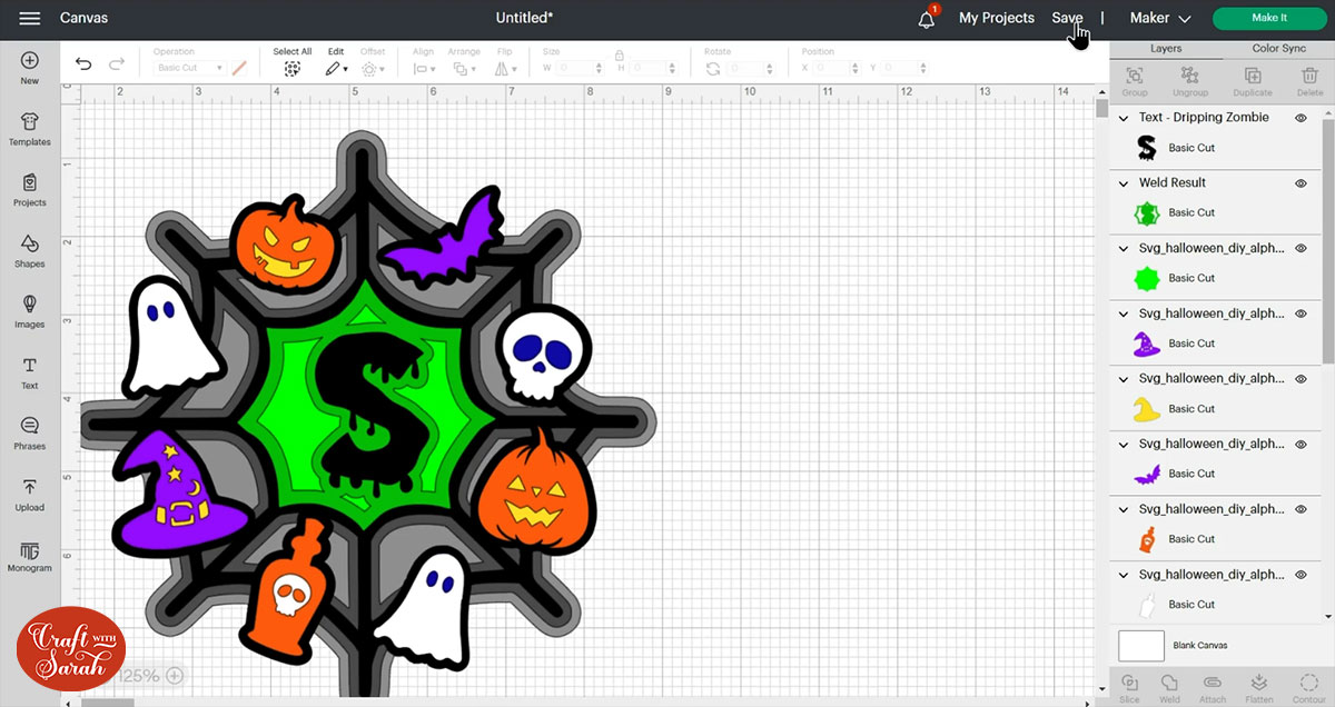 When you’re happy with how the project looking in Design Space, save the project and then click “Make It” and follow the instructions on-screen to cut out all the layers.