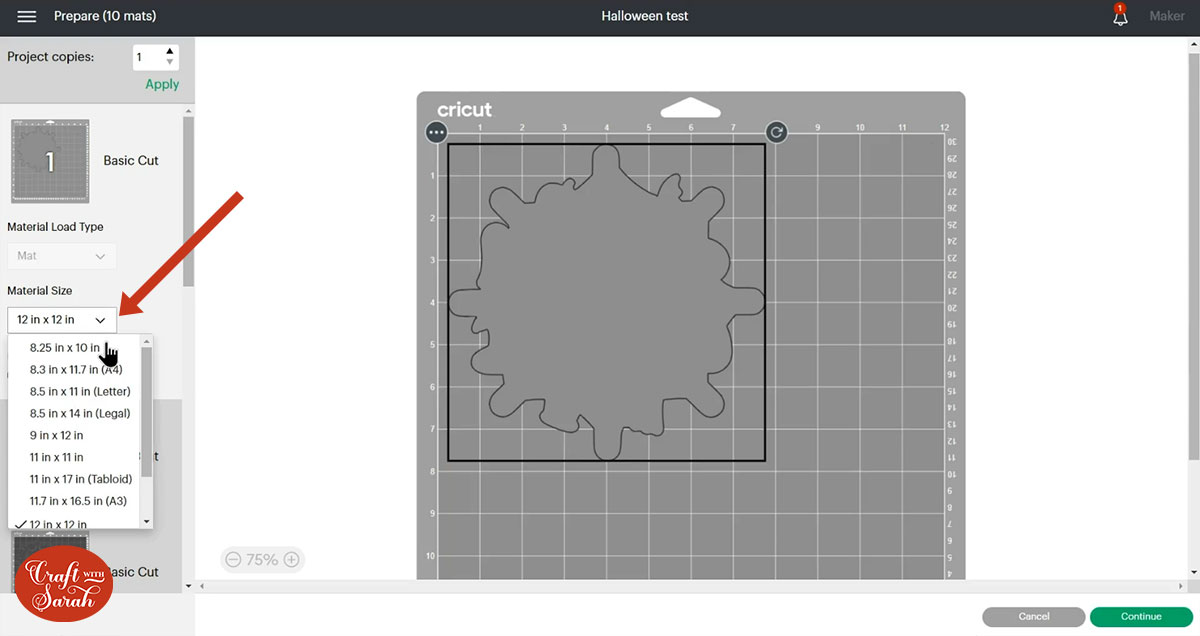 I cut my design at 7 inches wide. I don’t recommend going smaller than about 5 inches in width as some of the cuts will get a little bit too tiny and hard to stick.