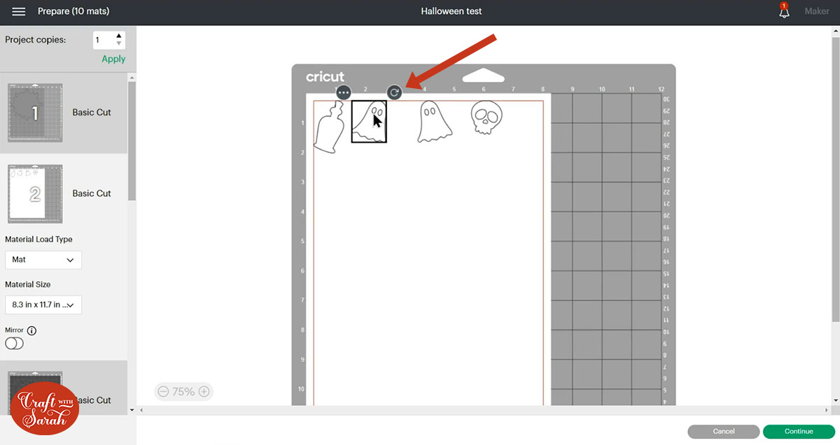 To save space on your cardstock, you can move things around by clicking and dragging. Make sure when you’re moving things about that nothing overlaps because otherwise, it won’t cut out properly.