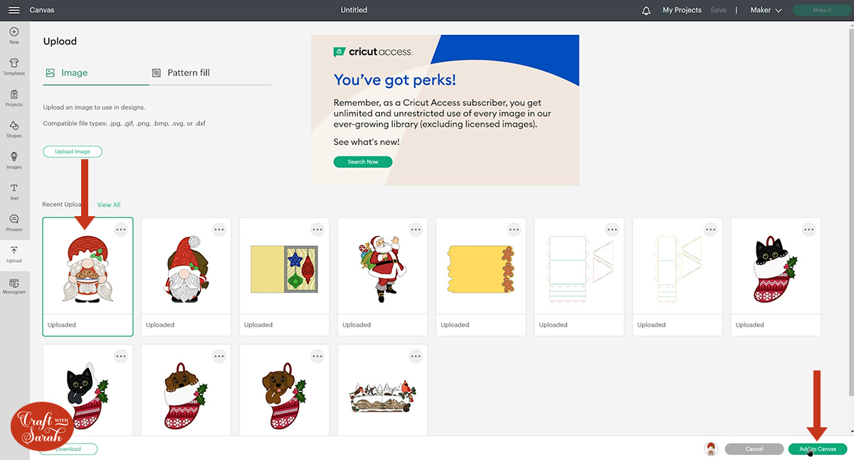 After uploading, the design will show in your “Recently Uploaded Images”.