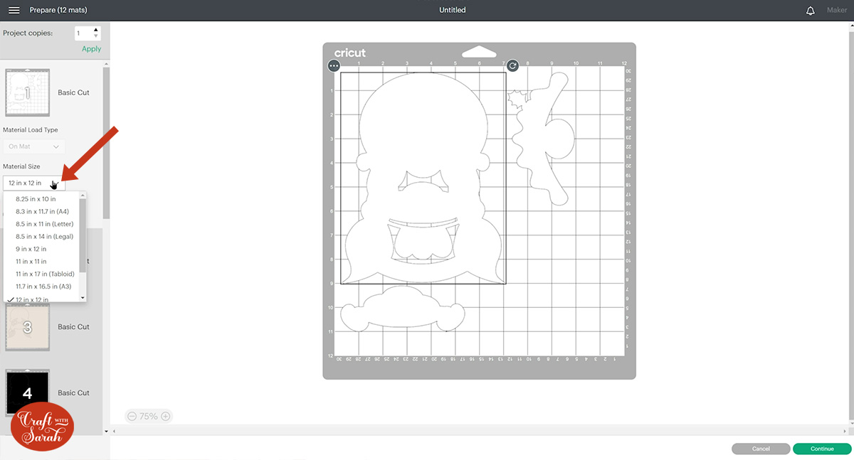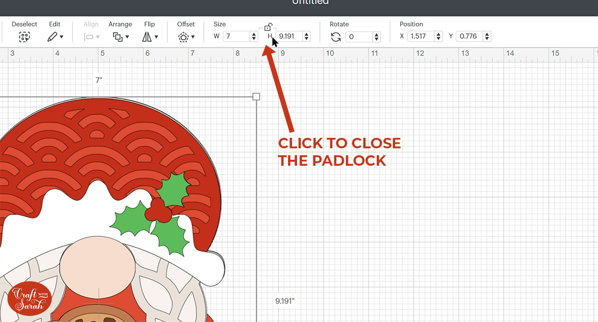 I cut my design at 9 inches tall (6.854 inches wide). I don’t recommend going smaller than about 6 inches tall as some of the cuts will get a little bit too tiny and hard to stick.