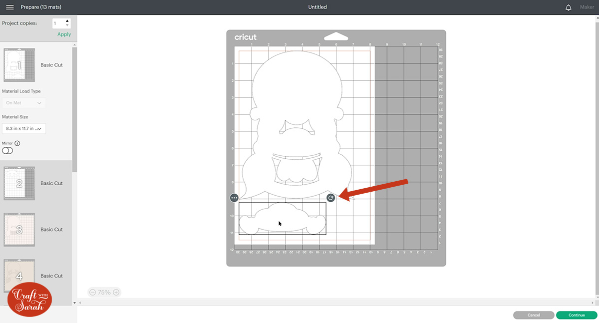 To save space on your cardstock, you can move things around by clicking and dragging. Make sure when you’re moving things about that nothing overlaps because otherwise, it won’t cut out properly