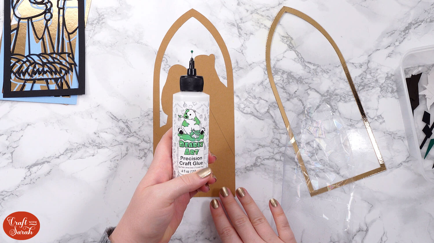 Bearly Art Glue comes with a tiny nozzle to make it easy to apply glue to small areas of card. The Collall glue doesn’t come with this, so it’s easiest to decant it into needle tip applicator bottles so that you have more control.