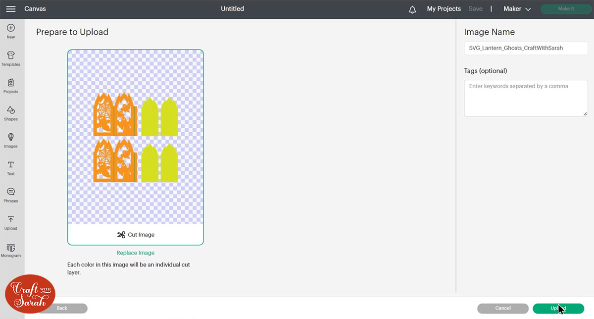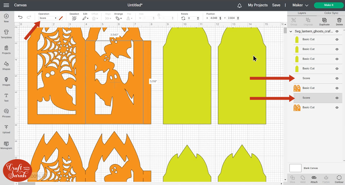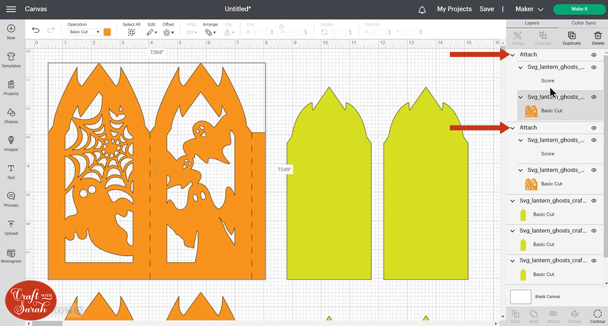 For this tutorial, I’ll show you how to make the ghost lantern which is SVG_Lantern_Ghosts_CraftWithSarah, but it’s exactly the same for any of these designs.