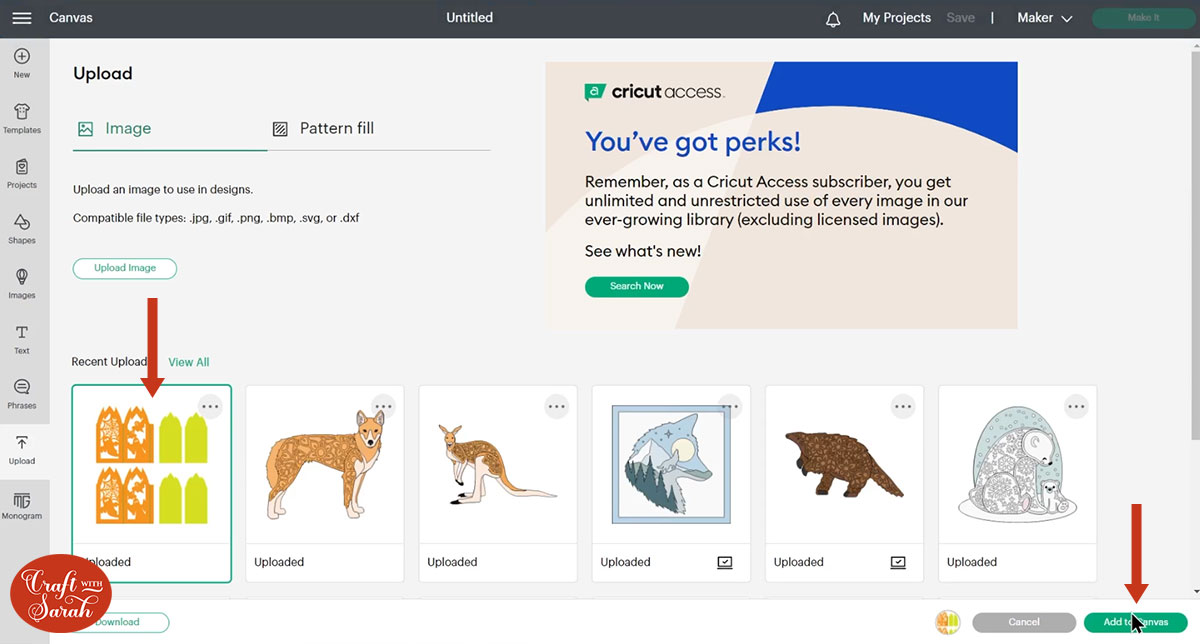 After uploading, the design will show in your “Recently Uploaded Images”.