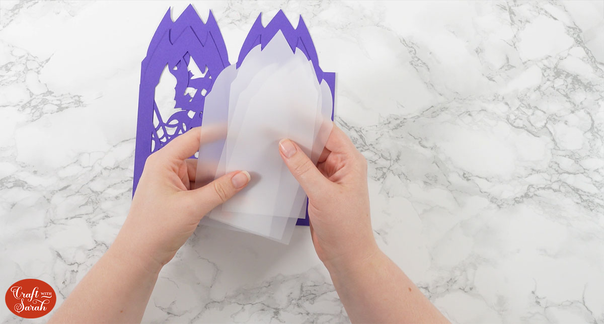 Cut the “inside” pieces of the luminary from a semi-transparent material such as vellum, diffusion material (for camera lights), parchment paper or tracing paper.