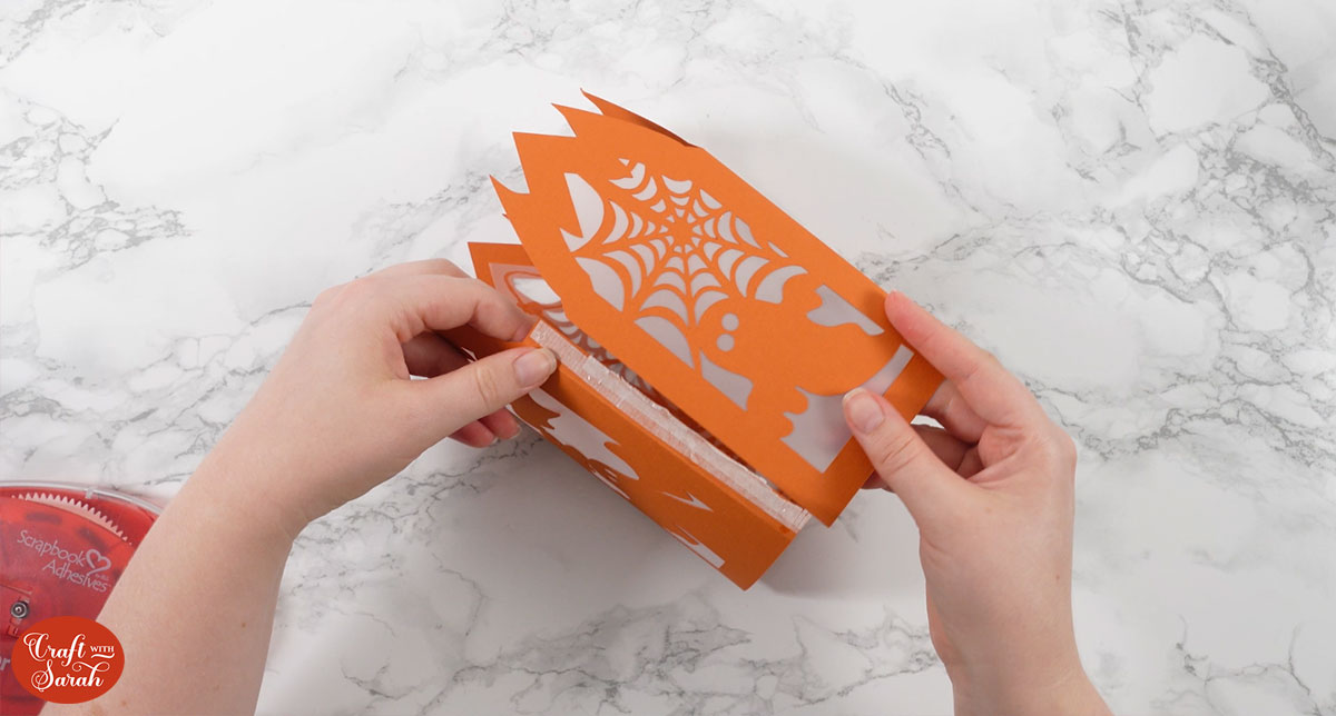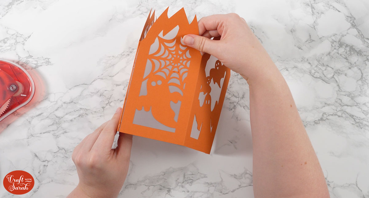 Stick the other tab to the inside of the matching side to form your finished luminary.