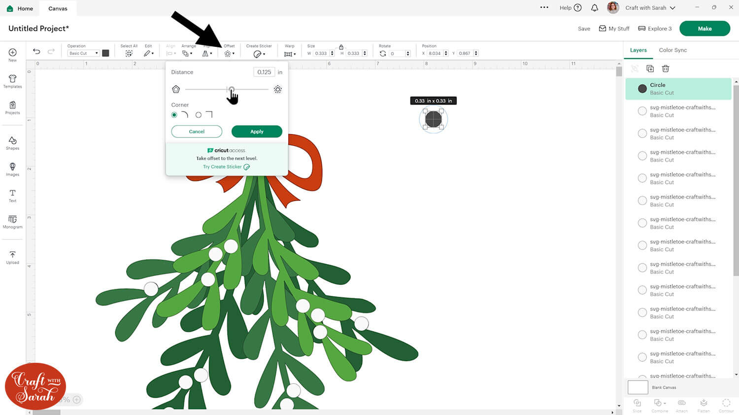 Click “Offset” and give the circle a border. Make it fairly thick so that the Cricut can cut the line easily.
