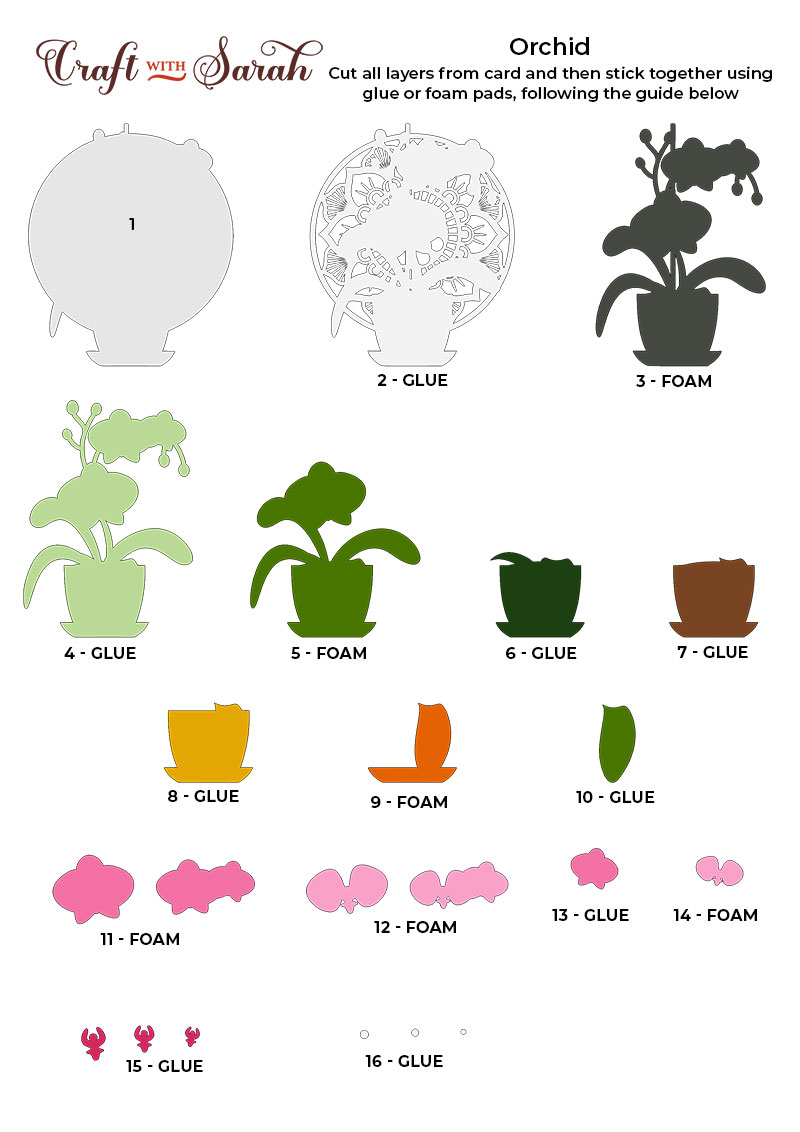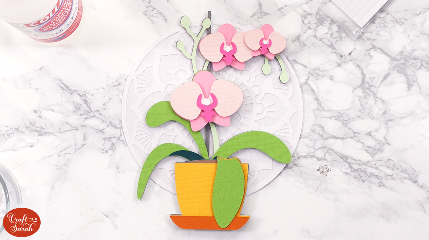 After sticking all the pieces of card together, you’ll have a lovely orchid papercraft all finished!