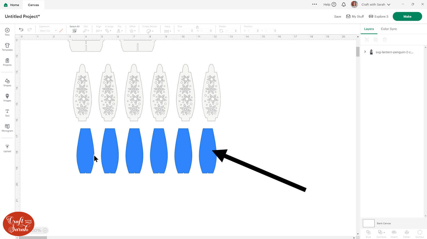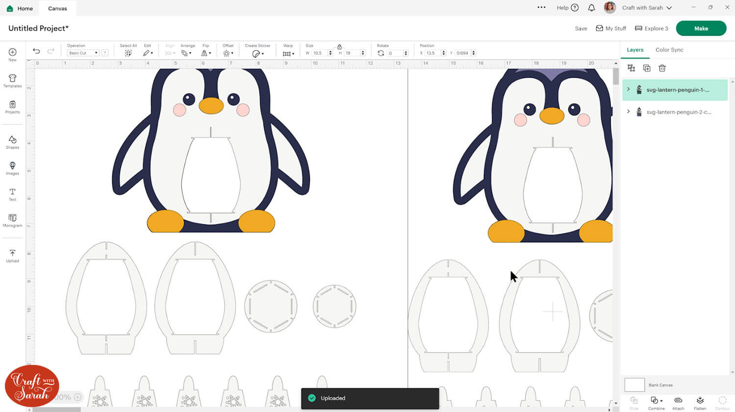 Each penguin lantern comes as a separate SVG file, so you will need to upload two files if you want to make both penguins.