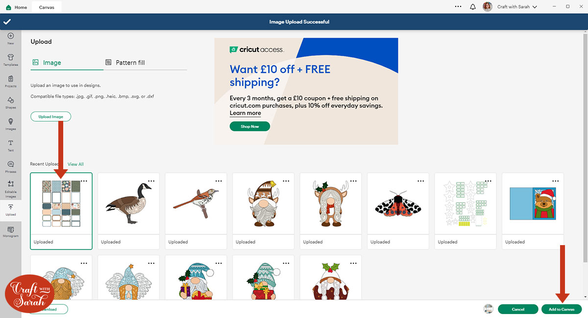 After uploading, the design will show in your “Recently Uploaded Images”.