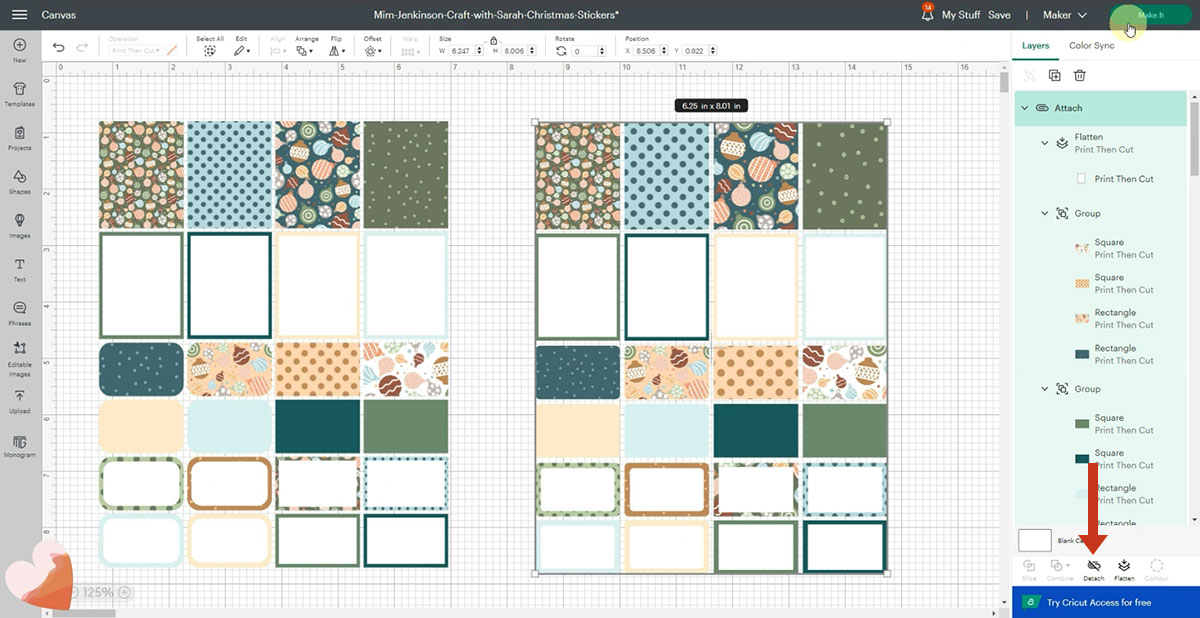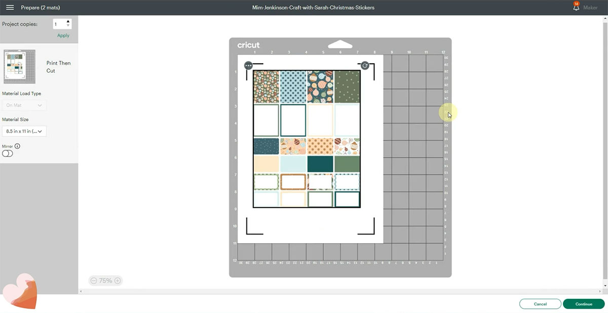 Load it into your Cricut machine and follow the instructions in Design Space to get the stickers cut.
