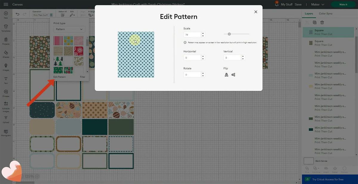 If you have your own patterns or want to use the ones from within Design Space you can create your own stickers following the steps below.