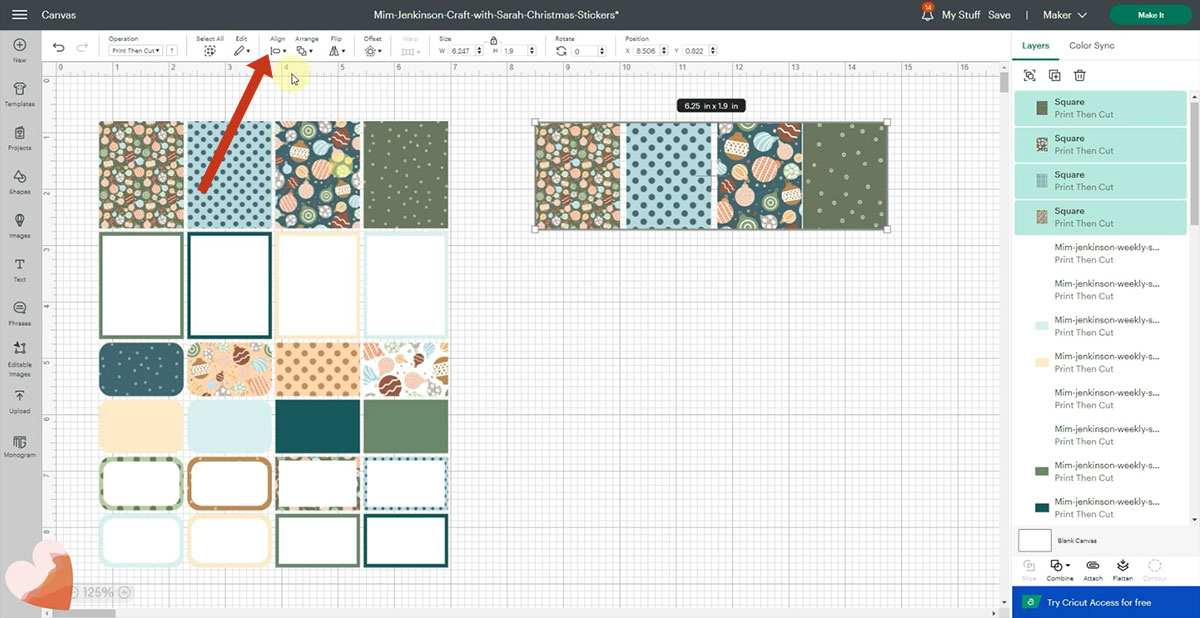 Select the 4 stickers and press Align > Align Top to get them all neat.