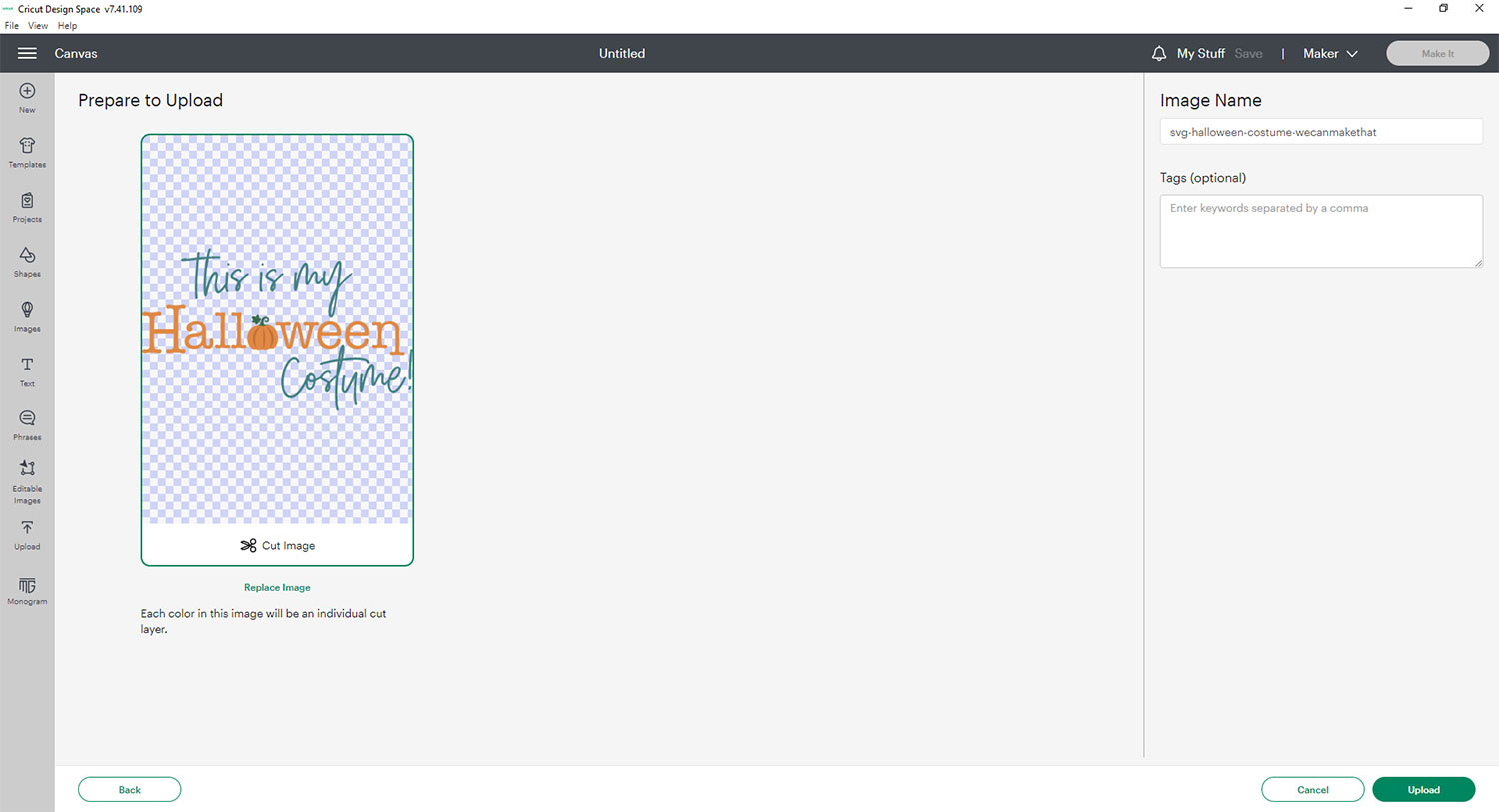 Important: For Cricut Design Space, upload the file called svg-halloween-costume-wecanmakethat.svg
