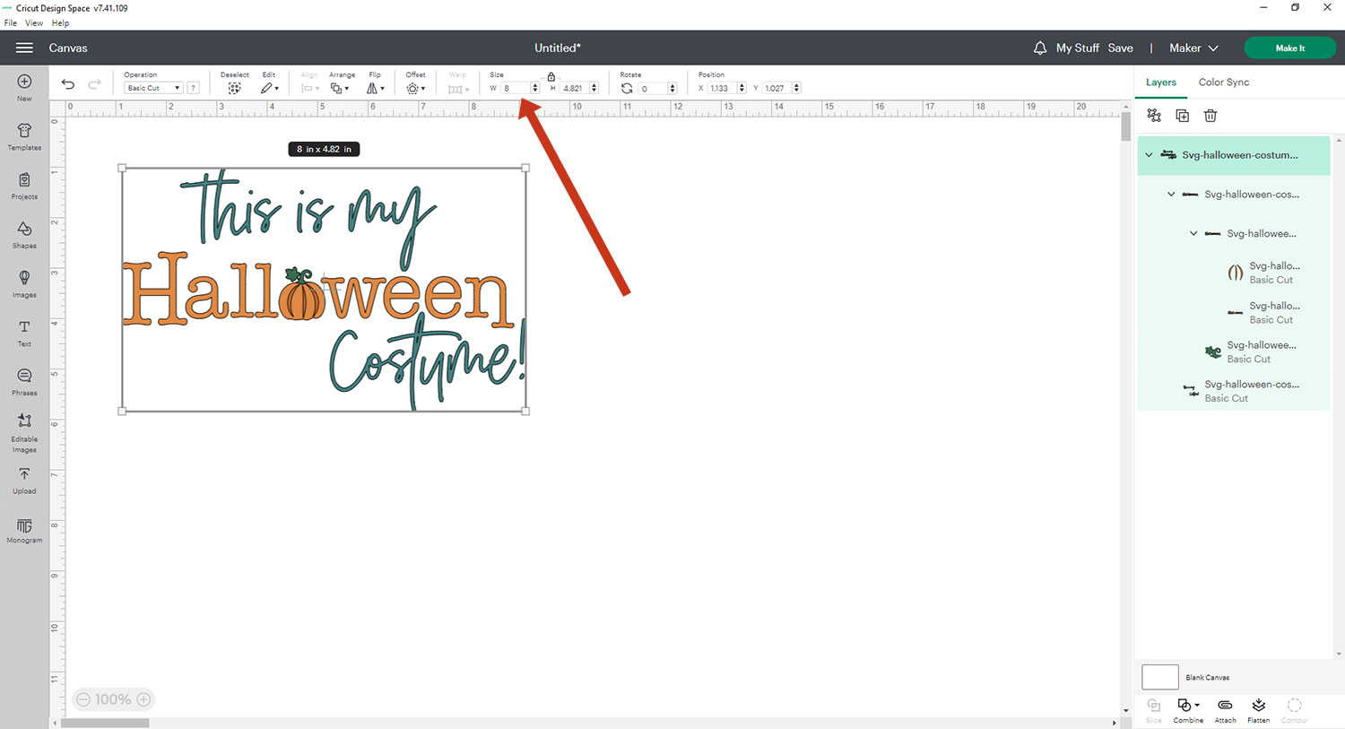 Size the design as you wish. For this T-shirt, Chelly resized it to 8 inches.