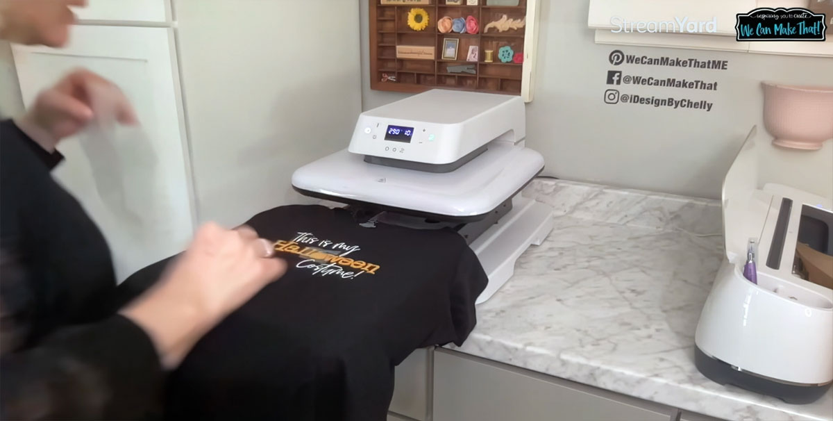 Chelly from We Can Make That! is showing us how to use puff vinyl to make the perfect Halloween T-shirt.
