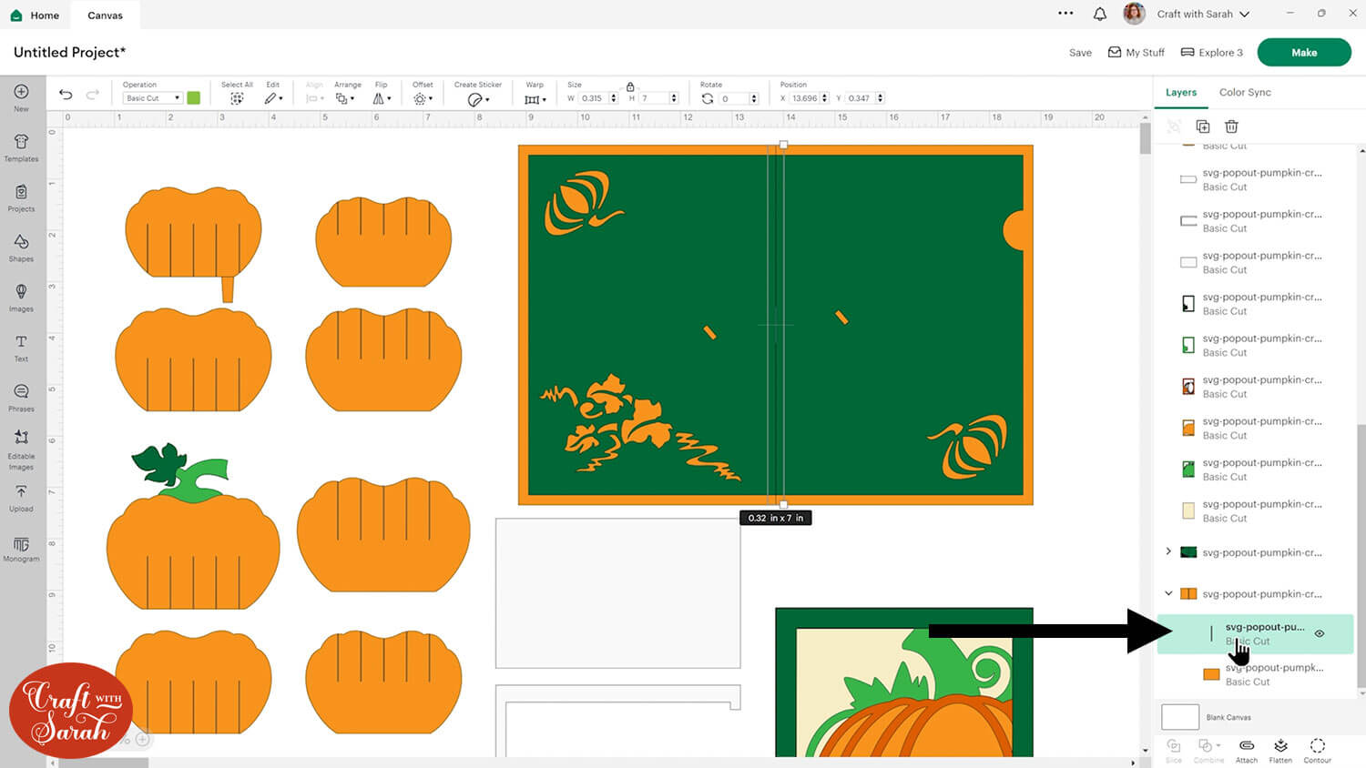Click the card and press “Arrange > Send to Back” to move it back behind the inner section with the pumpkin cutouts.