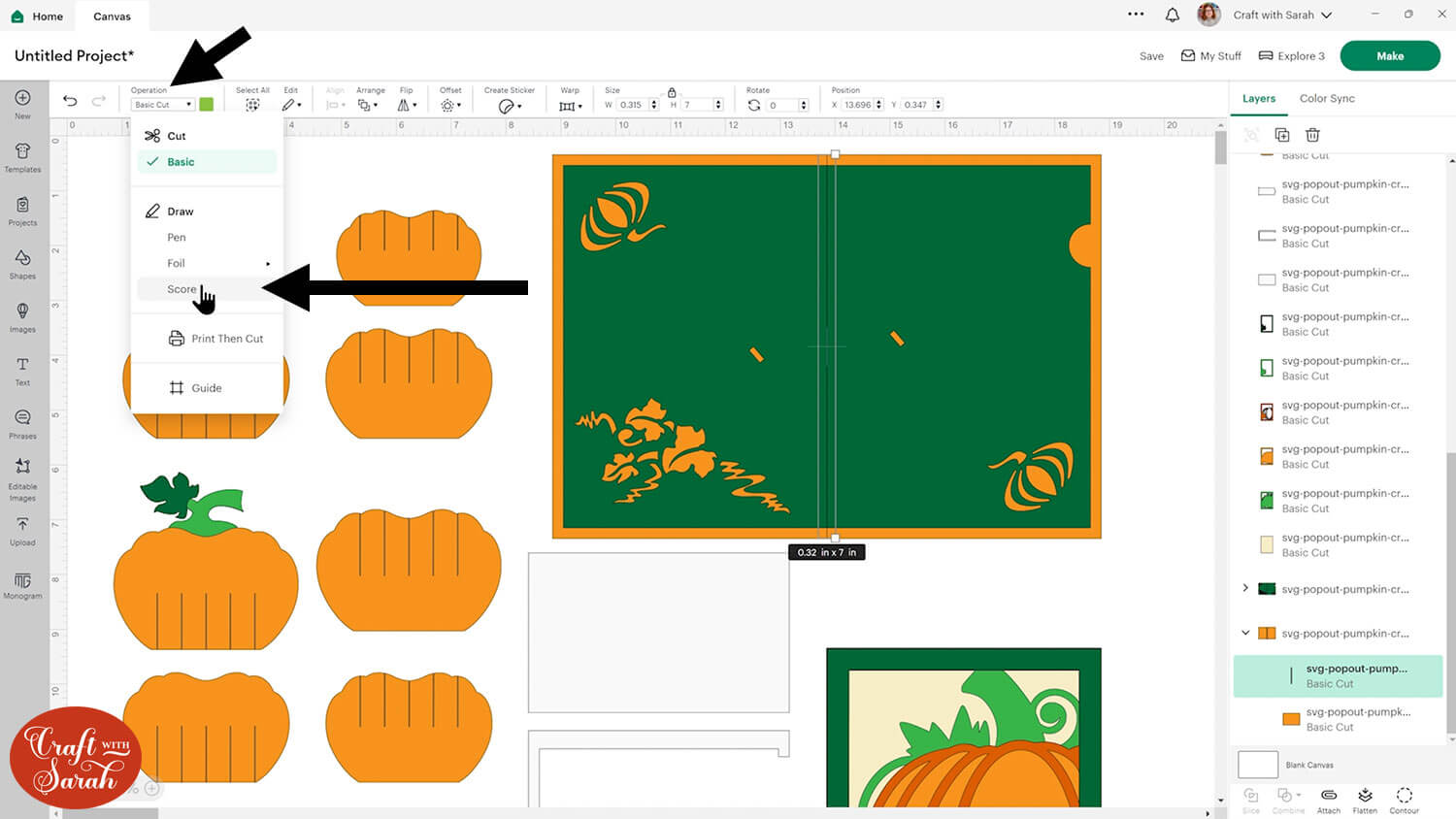 TIP: If you don’t have a scoring wheel or stylus for your Cricut then click the single-line layers and hit the trash can to delete them instead. It will be a little bit trickier to put together without score lines because you will have to fold it manually in the correct places. Or, check out these alternative ways to score with a Cricut.