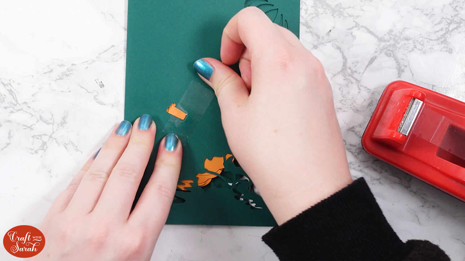 When you’re adding foam squares to the larger pieces of card, make sure you put some in the middle of the card as well as around the edge. If you don’t put any in the middle, there is nothing to hold the card flat so it might bow downwards without them.