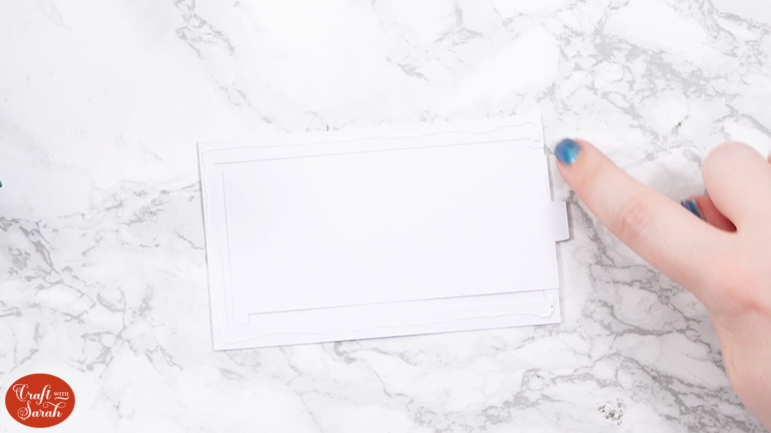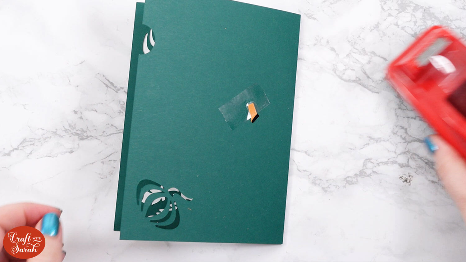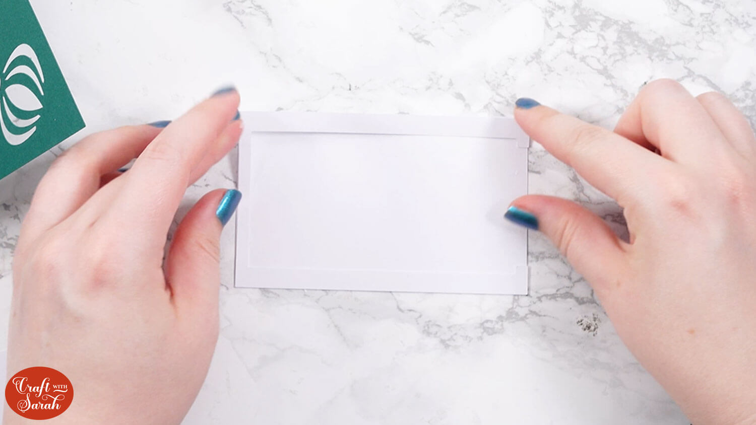 Take the green card and fold it down the middle. Place it on your work surface so that the cut out for the hidden message panel is on the right.