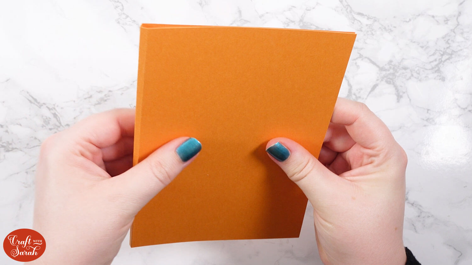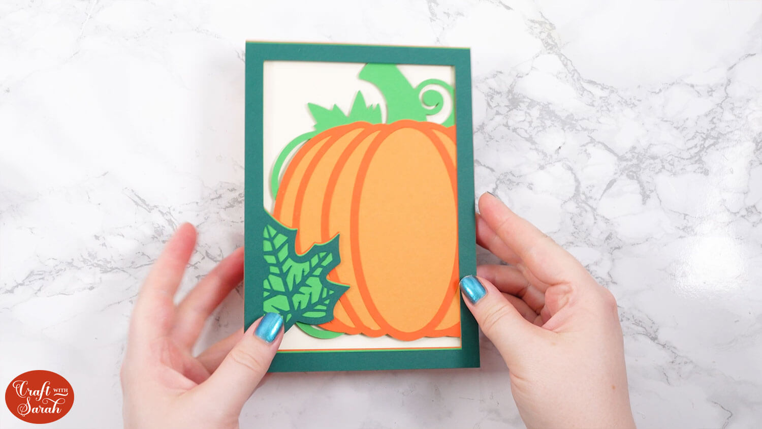 Place the pumpkin inside so that the left side has the tab on the top left of the card.