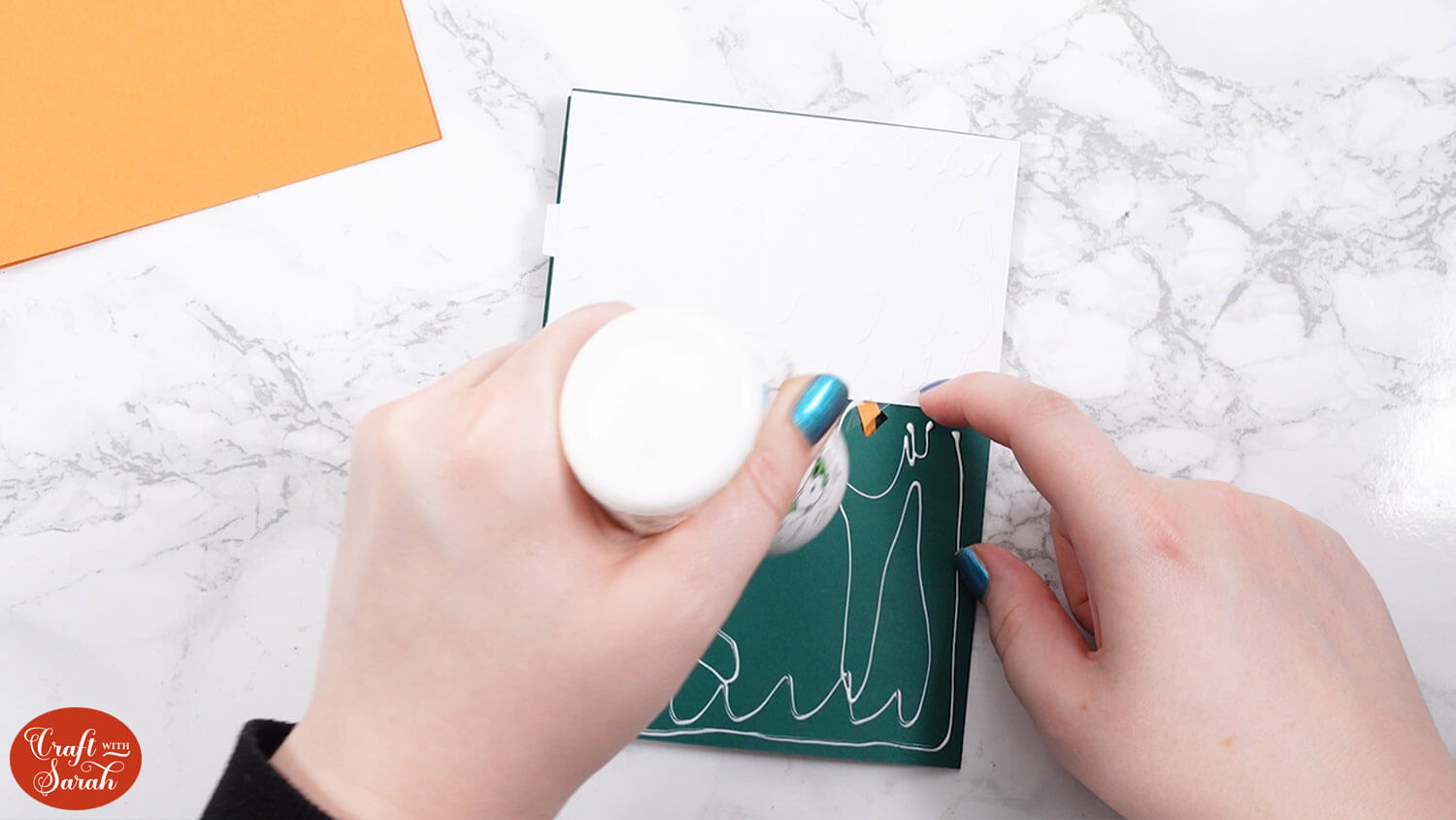 Close the card and press it all over to get the glue to stick, then open it up again before the glue dries so you can check the inside.