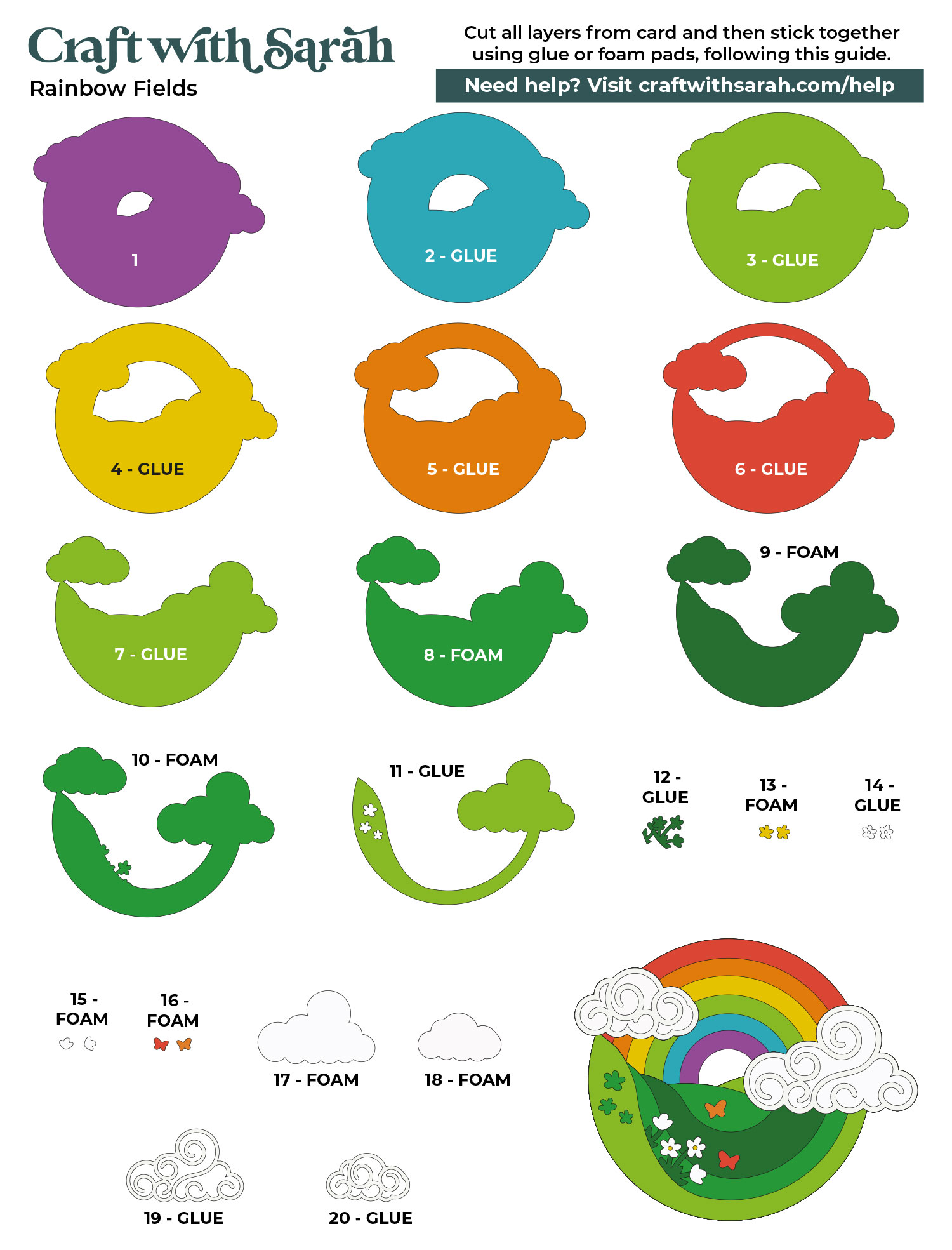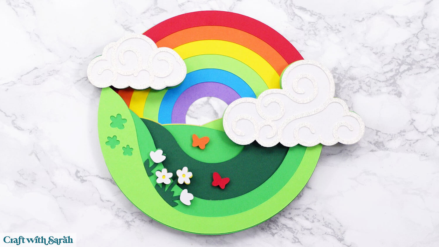 Make a beautiful and dimensional papercraft with this rainbow fields layered SVG.