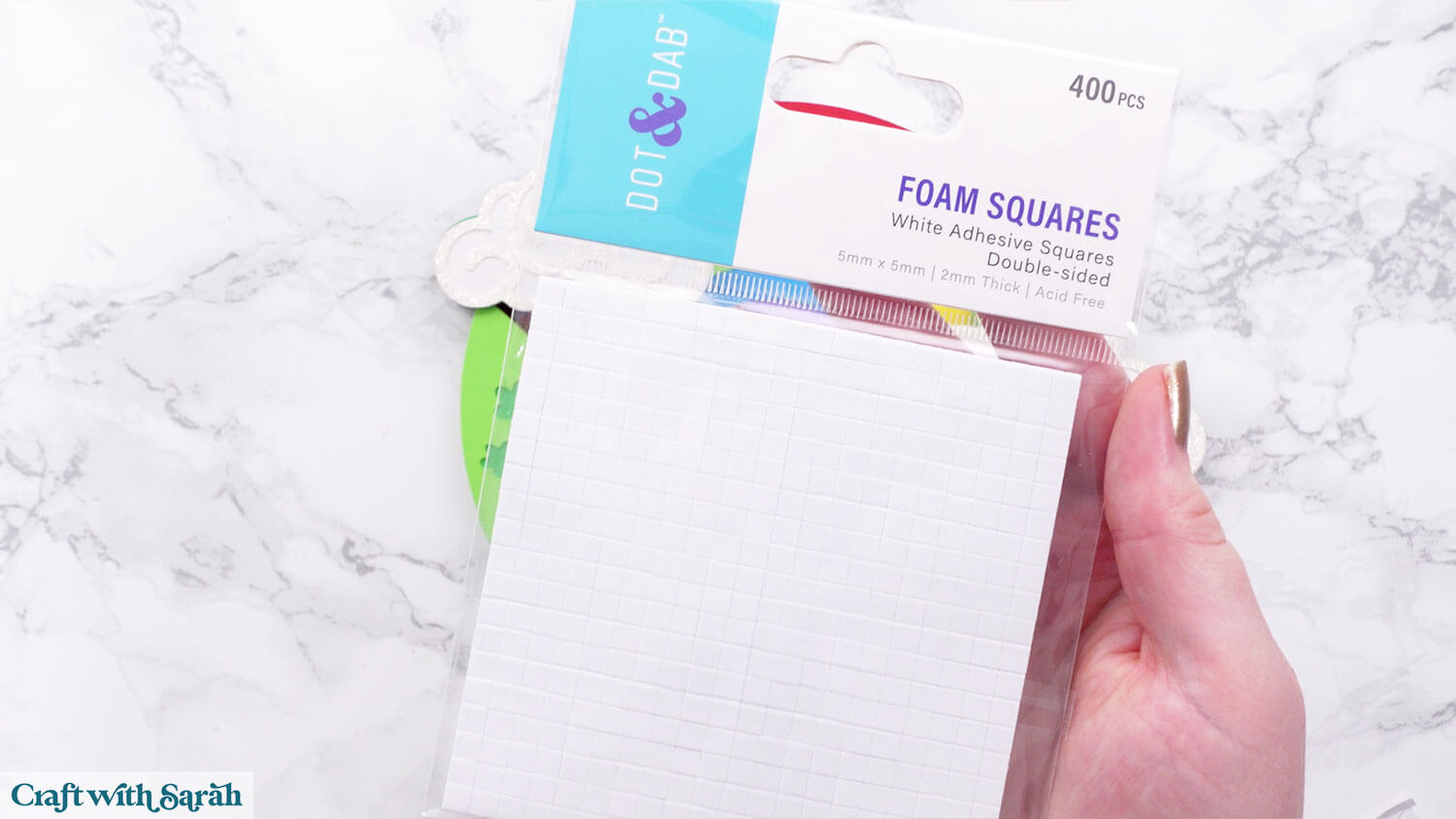 The foam pads that I use are from “Dot & Dab”, but any foam squares will work. If yours are big then you may need to cut them smaller with scissors to fit inside the edges of the layers.