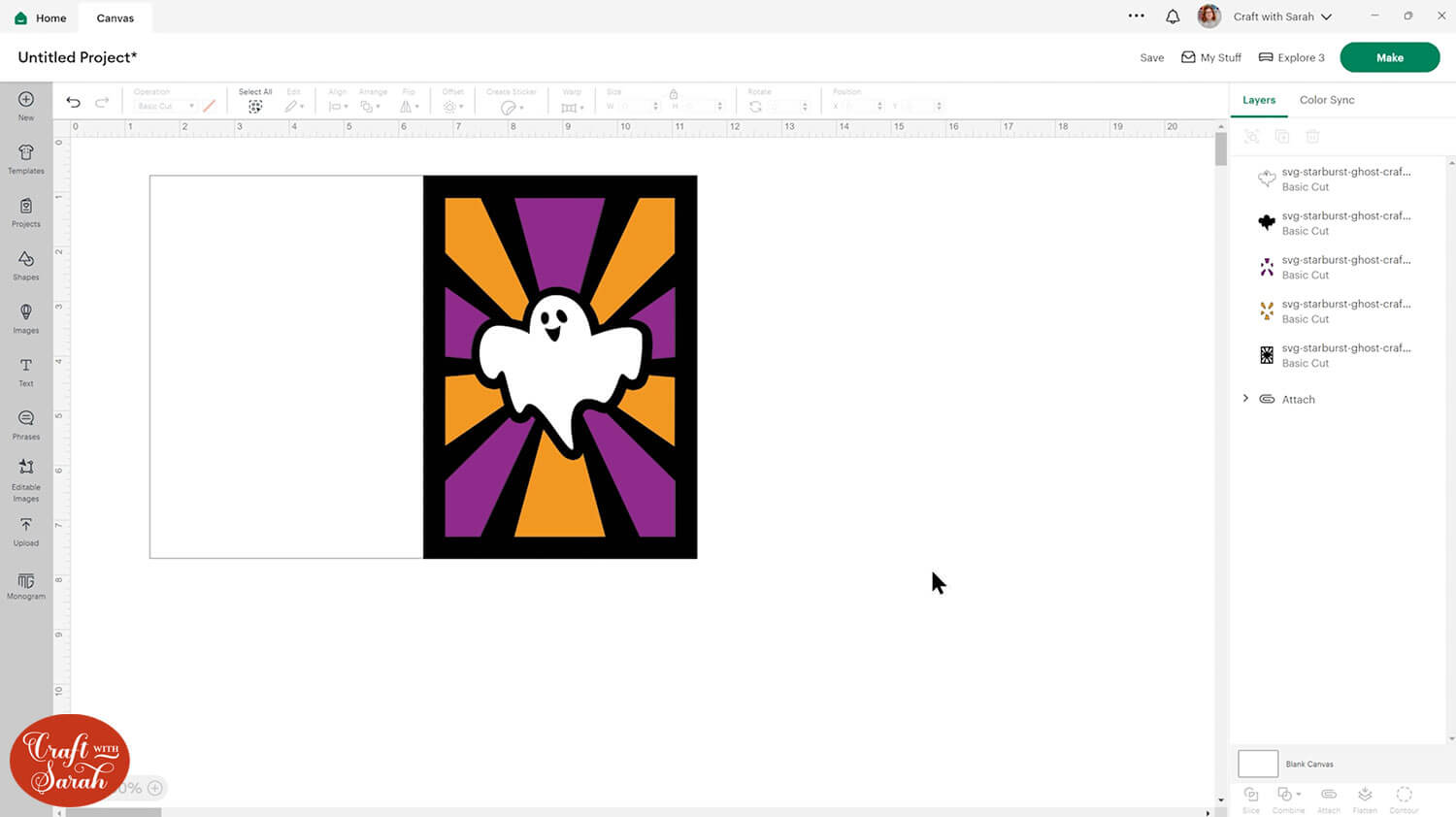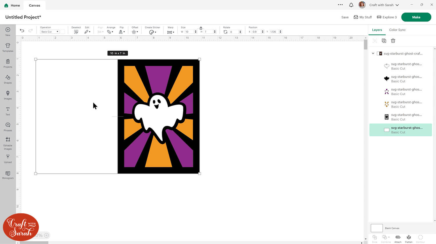 This project uses Design Space’s pattern fill feature to make custom starburst cards for Halloween! Use any papers, backgrounds or images you want to fill in the segments of the starburst effect.