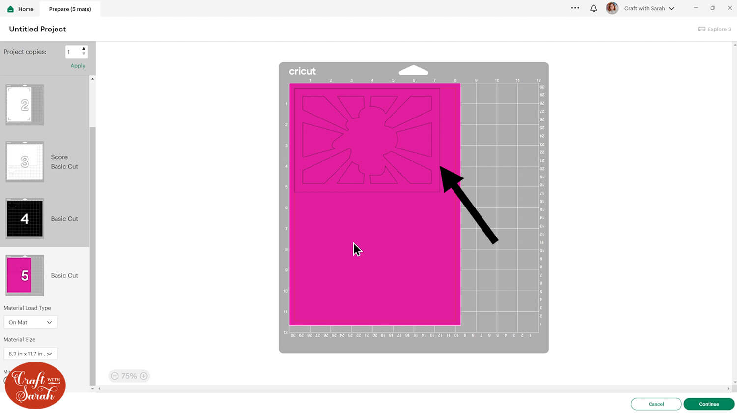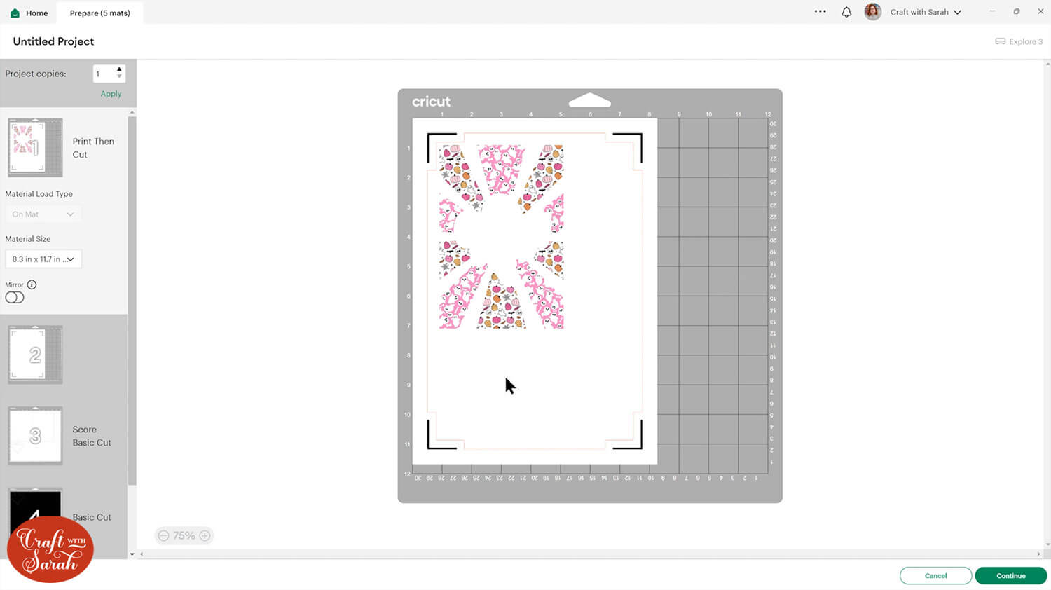 You’ll be shown a popup window with all the other pages of the design. Click the OTHER print then cut piece.