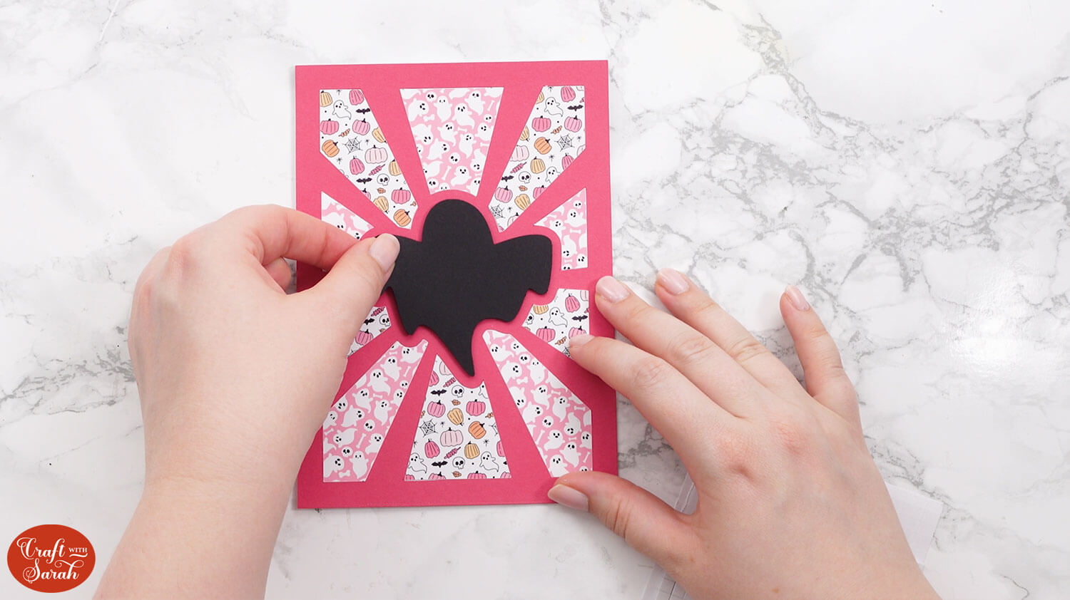 Use foam squares to stick the black part of the ghost into the middle of the card. This gives it a little bit of “pop” and dimension from the rest of the card.