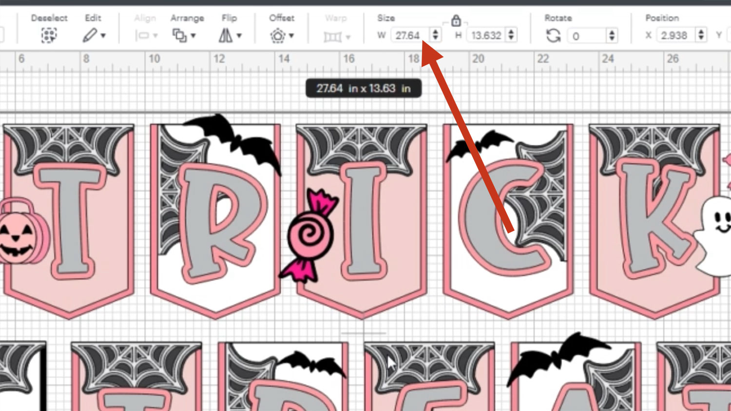 Look at the project in Design Space to help you to place the spider webs where they are supposed to go on the banner. Use glue to secure them to the banner.