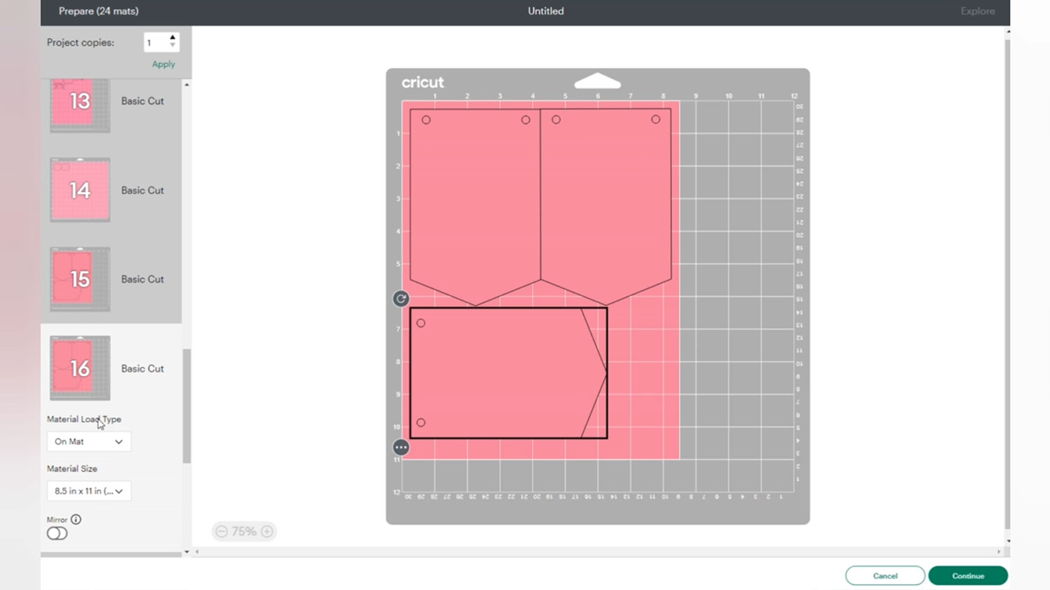 Make sure you have selected the correct cardstock size and position your cuts on the mat.