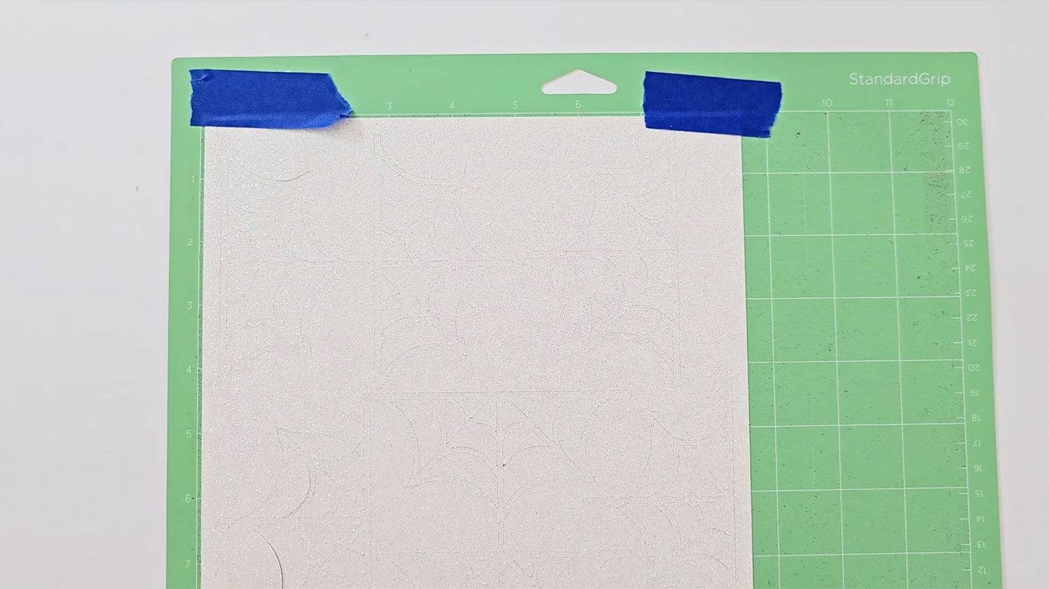 When using glitter cardstock you can use painter’s tape to make sure it stays securely on your mat.