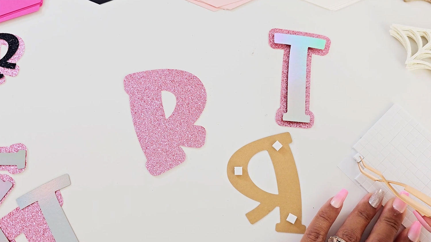 Start with your cardstock letters, which are made up of two layers. Foam the letter to the matching offset piece.