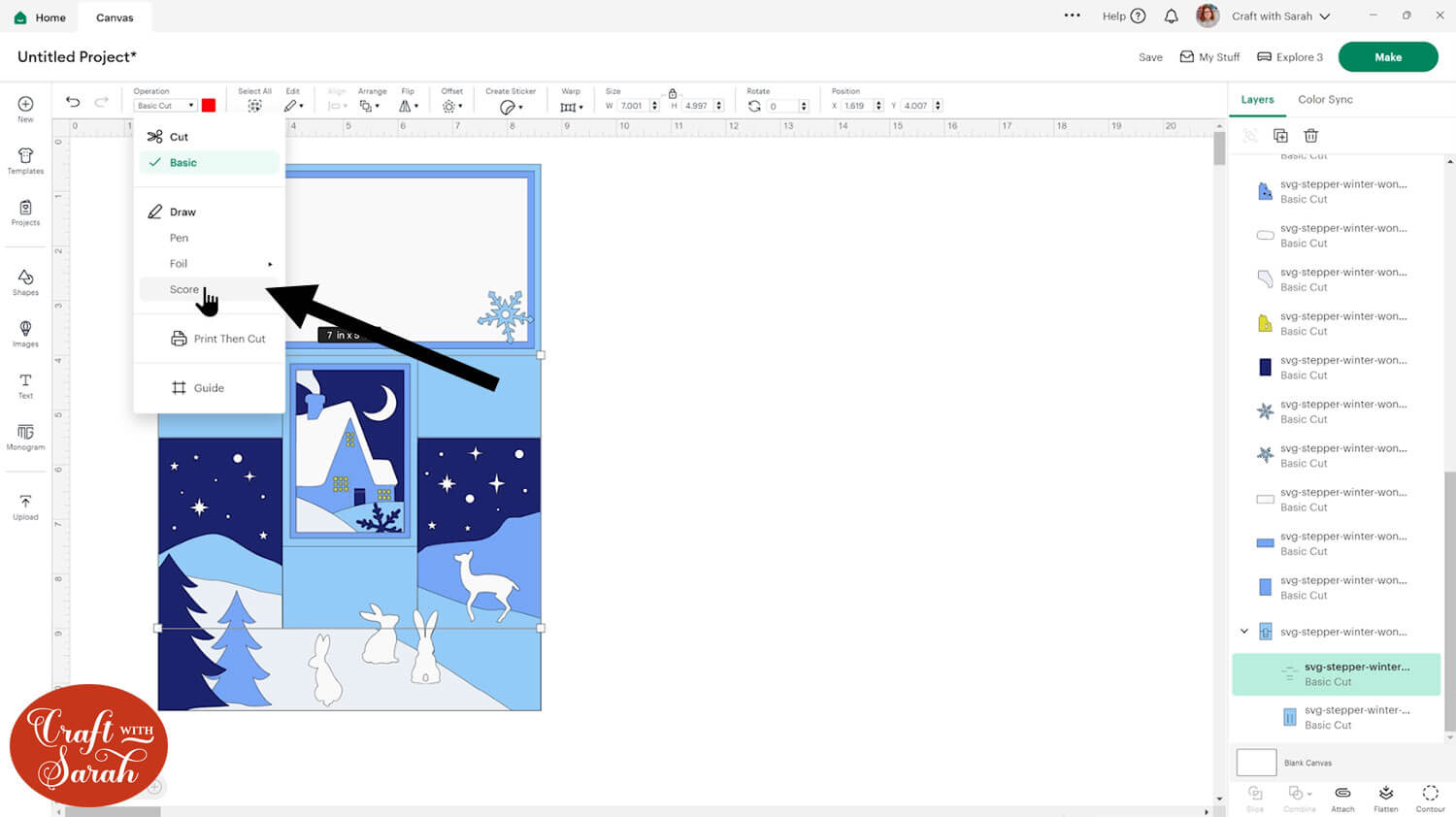 Design Space doesn’t automatically understand that we want to score some of the layers instead of cutting them, so we need to tell it what to do.