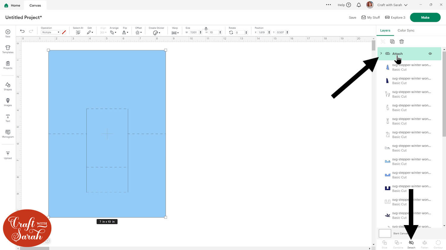First, make sure the design has loaded in at 10 inches tall and 7 inches wide. If not, resize it to those measurements. It’s ok if the measurements are a tiny bit off of 10×7.