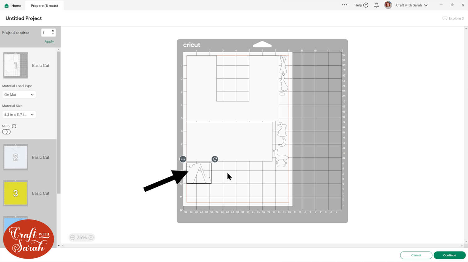To save space on your cardstock, you can move things around by clicking and dragging. Make sure when you’re moving things about that nothing overlaps because otherwise, it won’t cut out properly.