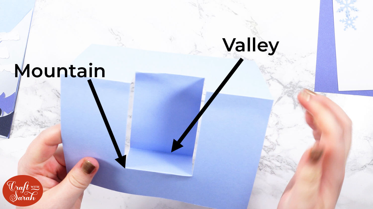 We will be using two different folds for the score lines on our stepper card: a mountain fold and a valley fold.