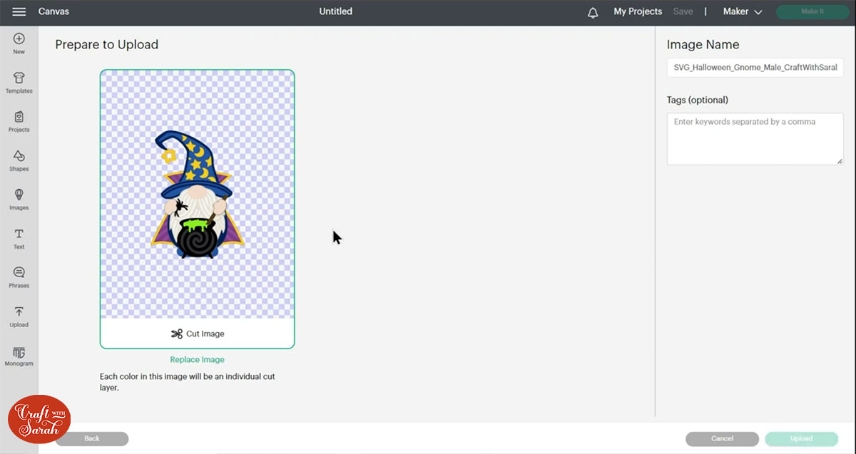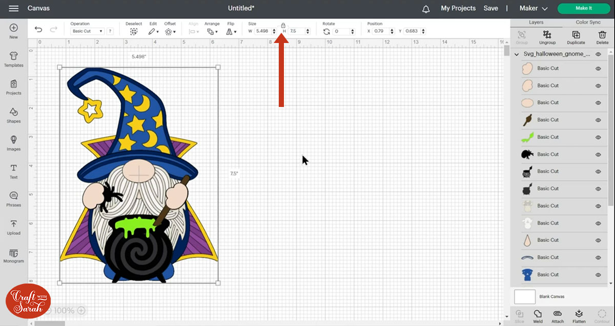 Go into the “Cut Files” subfolder and then select the file called SVG_Halloween_Gnome_Male_CraftWithSarah.svg
