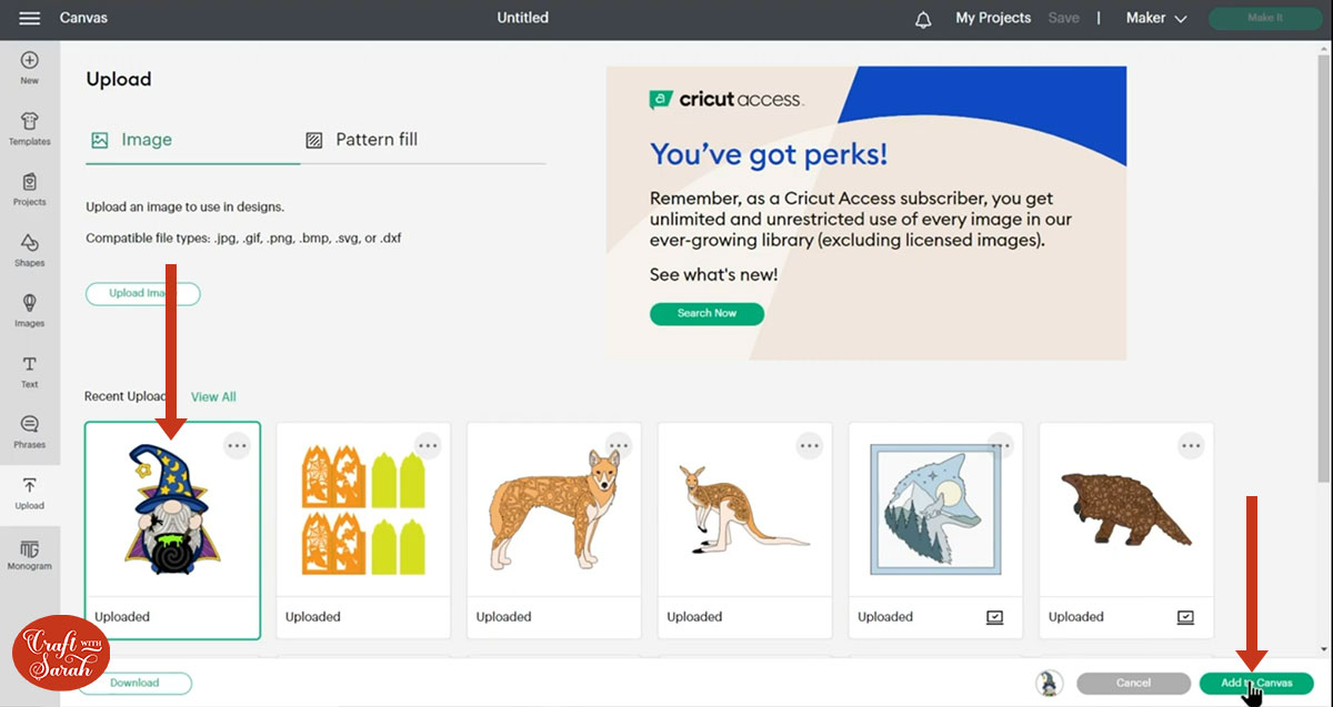 After uploading, the design will show in your “Recently Uploaded Images”.