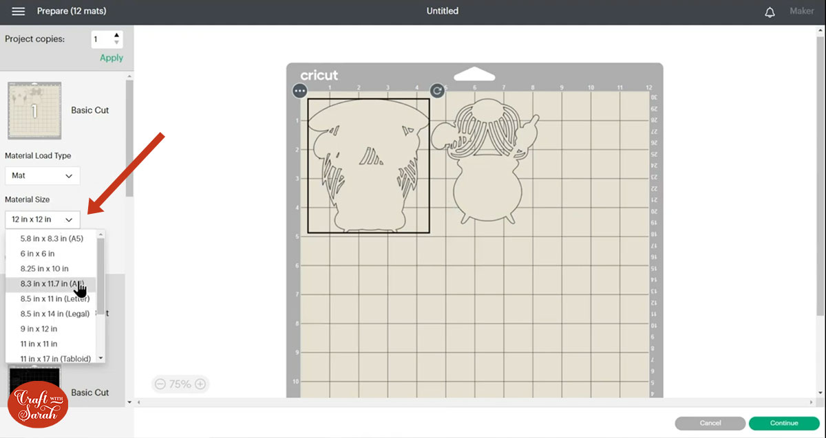 I cut my design at 9 inches tall. I don’t recommend going smaller than about 7 inches in height as some of the cuts will get a little bit too tiny and hard to stick.