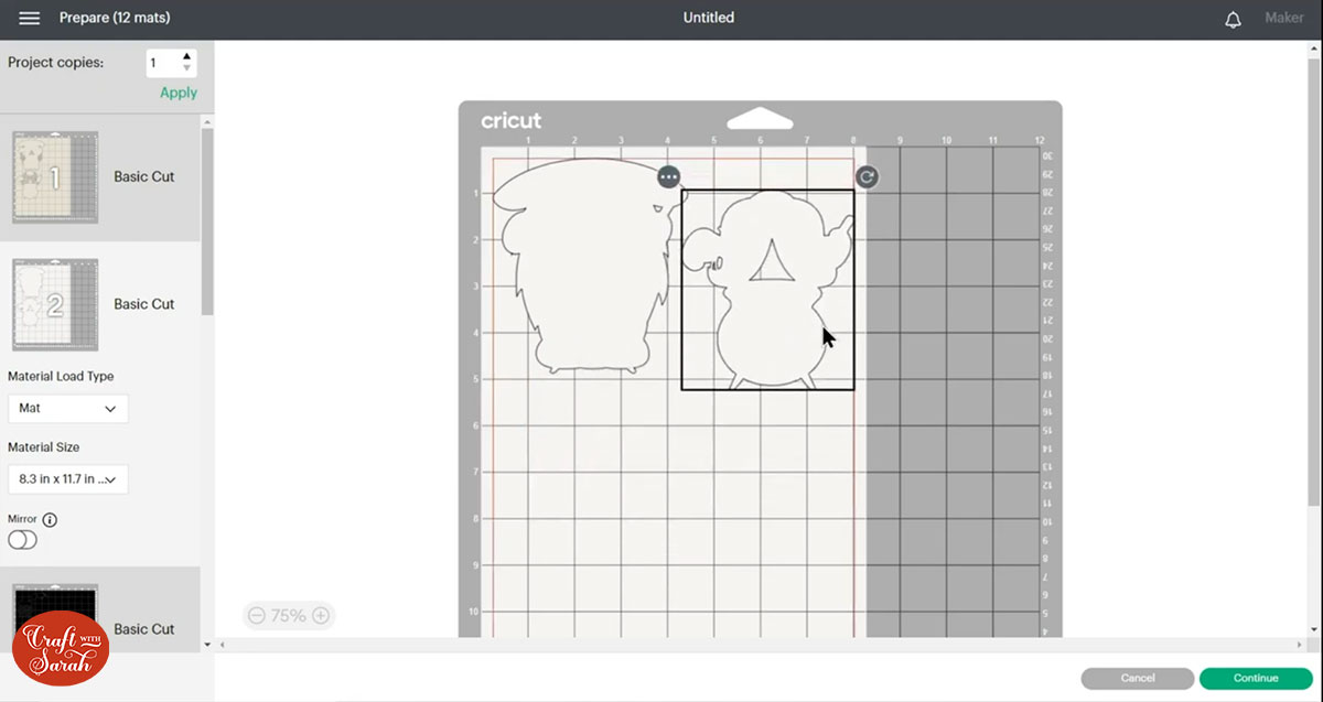 To save space on your cardstock, you can move things around by clicking and dragging. Make sure when you’re moving things about that nothing overlaps because otherwise, it won’t cut out properly