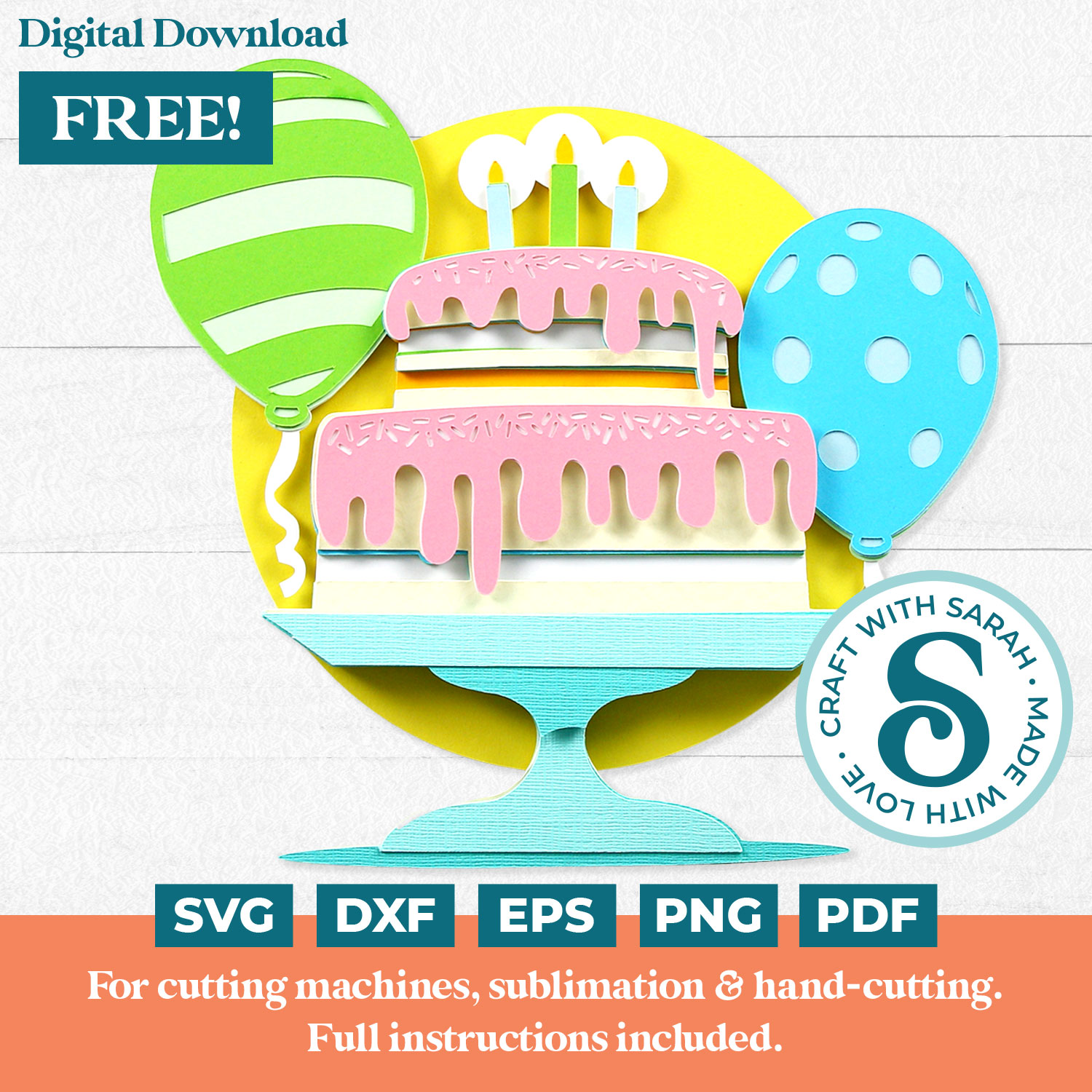 This free layered birthday cake SVG is perfect for birthday cards, banners and other celebration crafts.